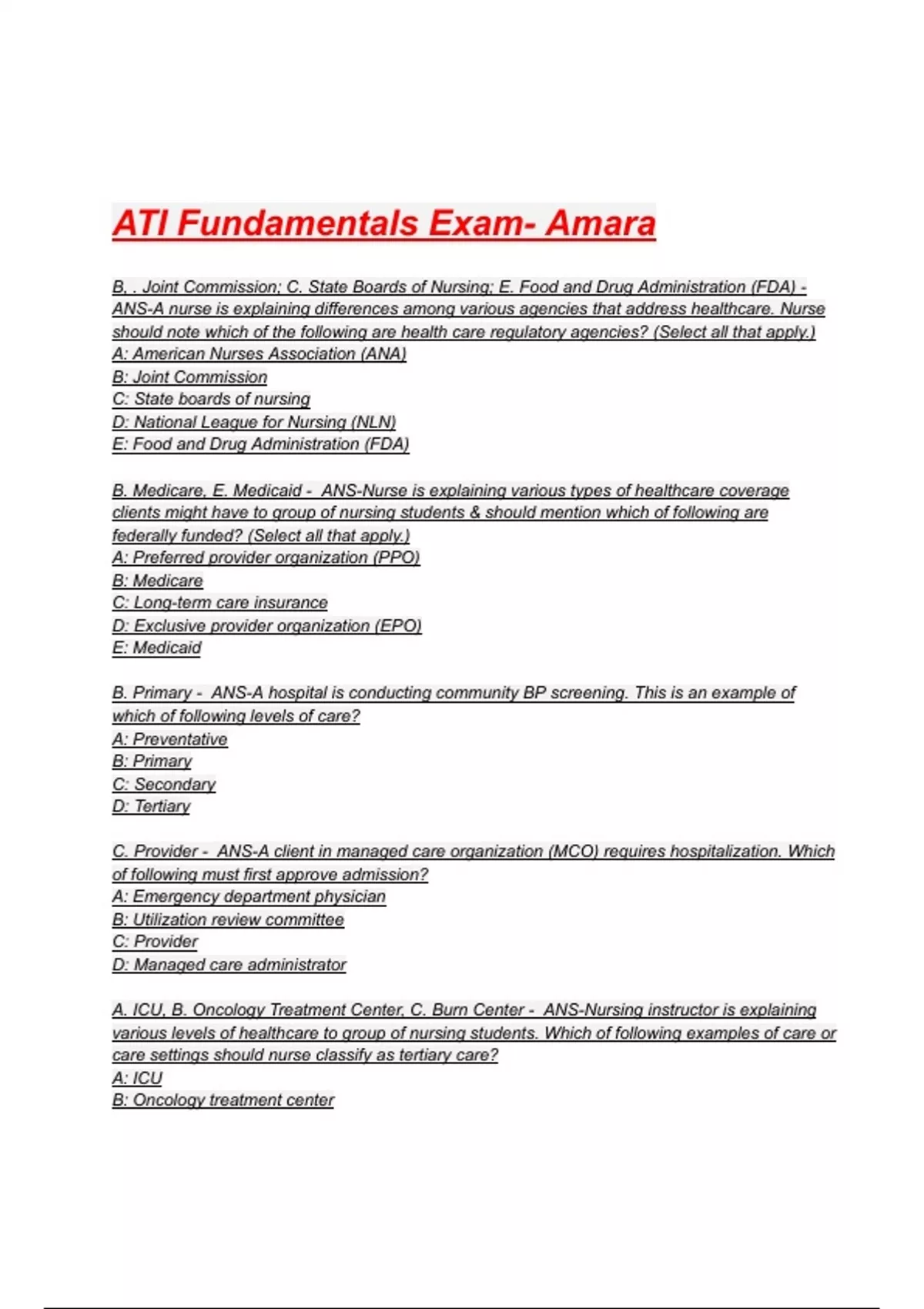 ATI Fundamentals Exam- Amara Questions with correct Answers 2025/2026( A+ GRADED 100% VERIFIED).