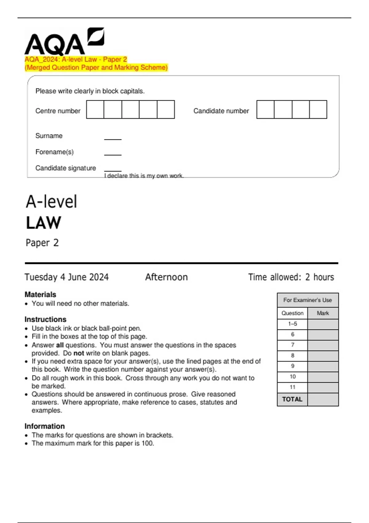 AQA_2024: A-level Law - Paper 2 (Merged Question Paper and Marking Scheme)