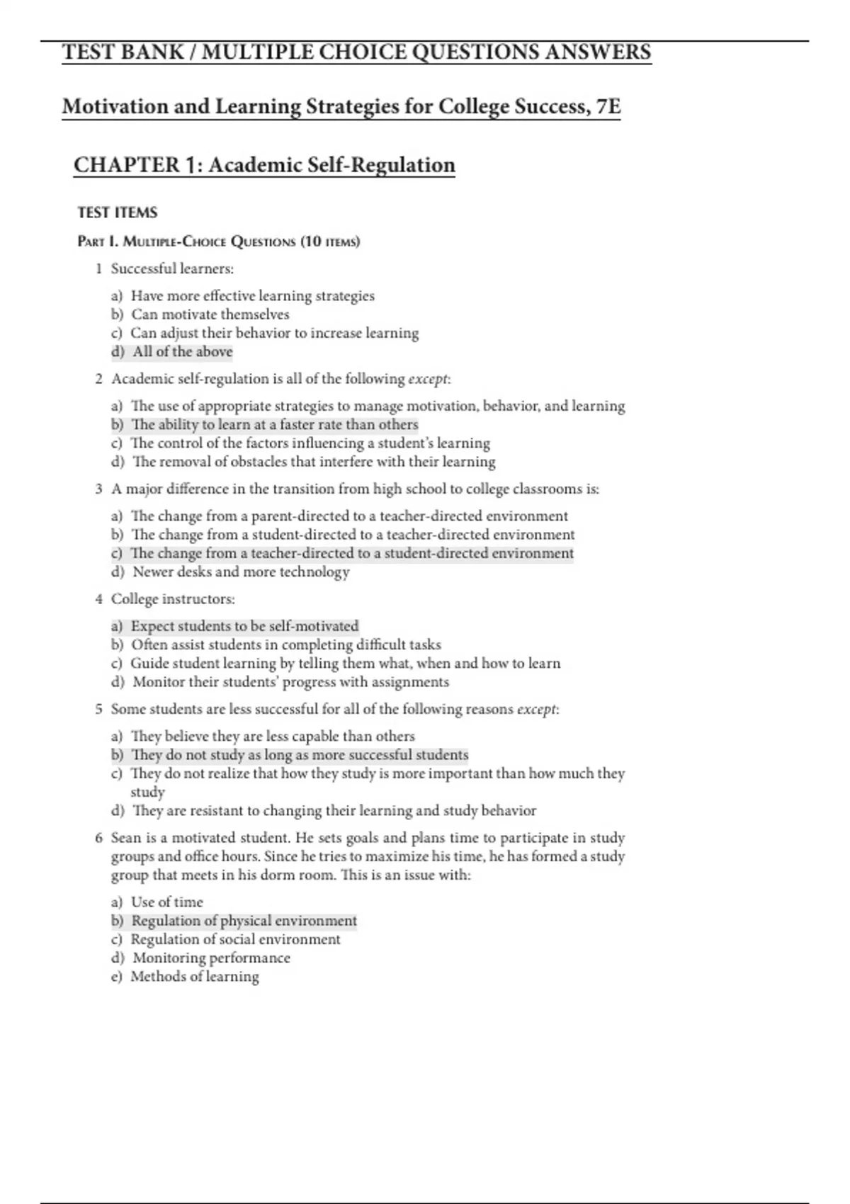 Part I. Multiple-Choice Questions (10 items)