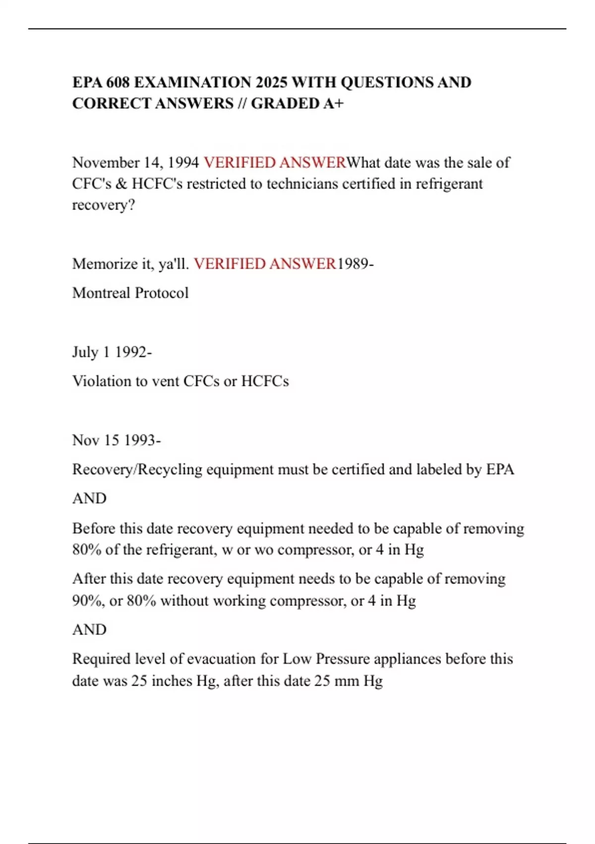 EPA 608 EXAMINATION 2025 WITH QUESTIONS AND