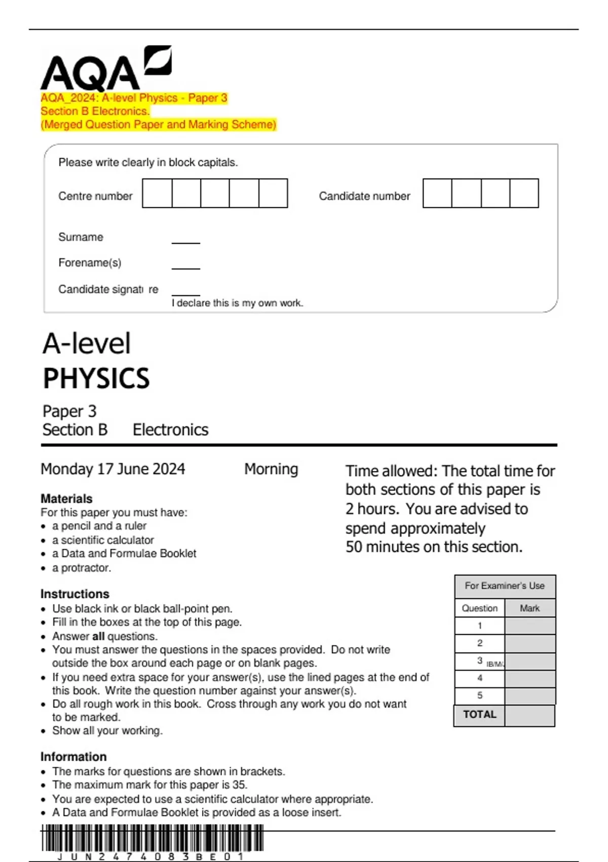 AQA_2024: A-level Physics - Paper 3 Section B Electronics. (Merged Question Paper and Marking Scheme)
