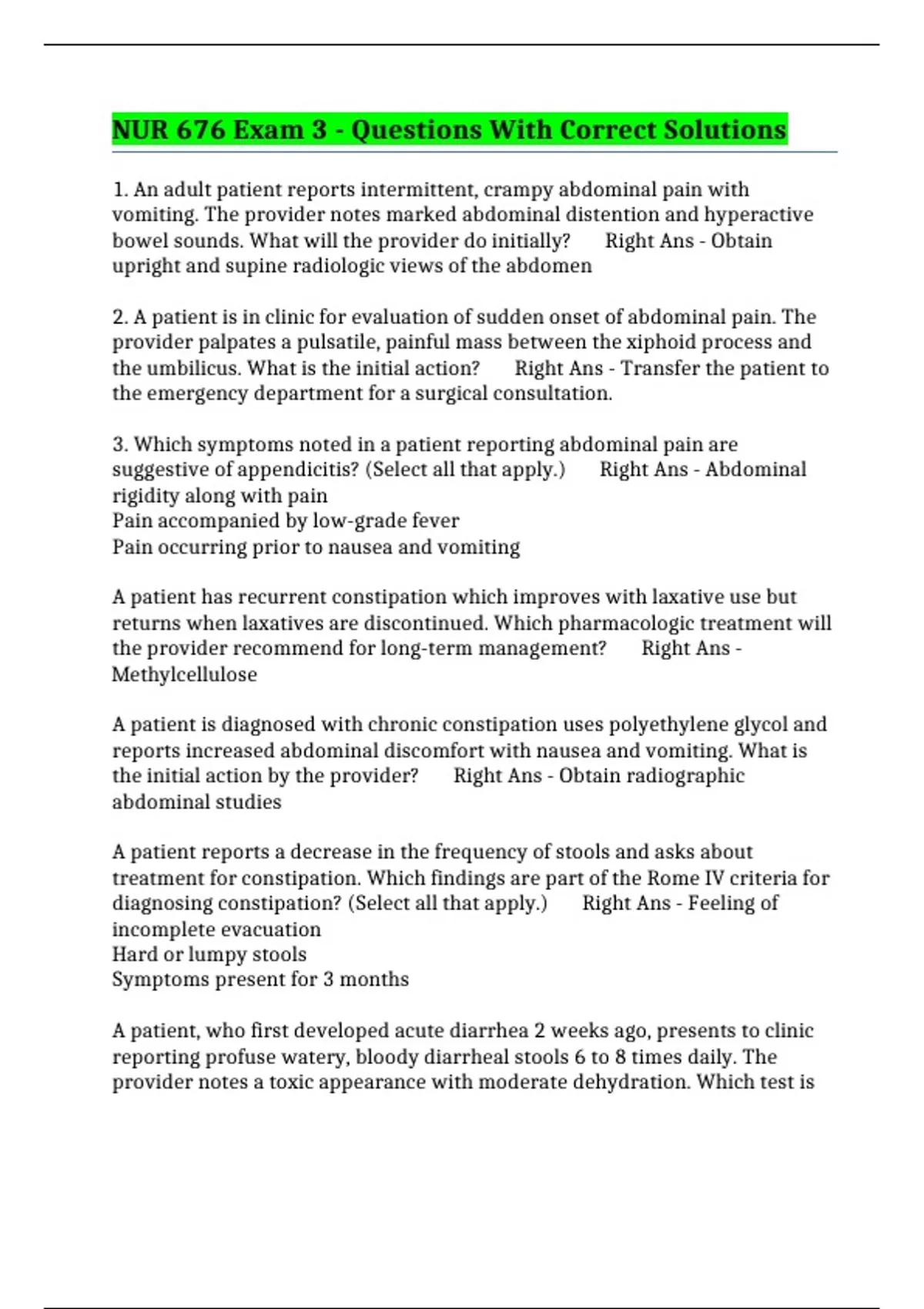 bowel sounds. What will the provider do initially? Right Ans - Obtain