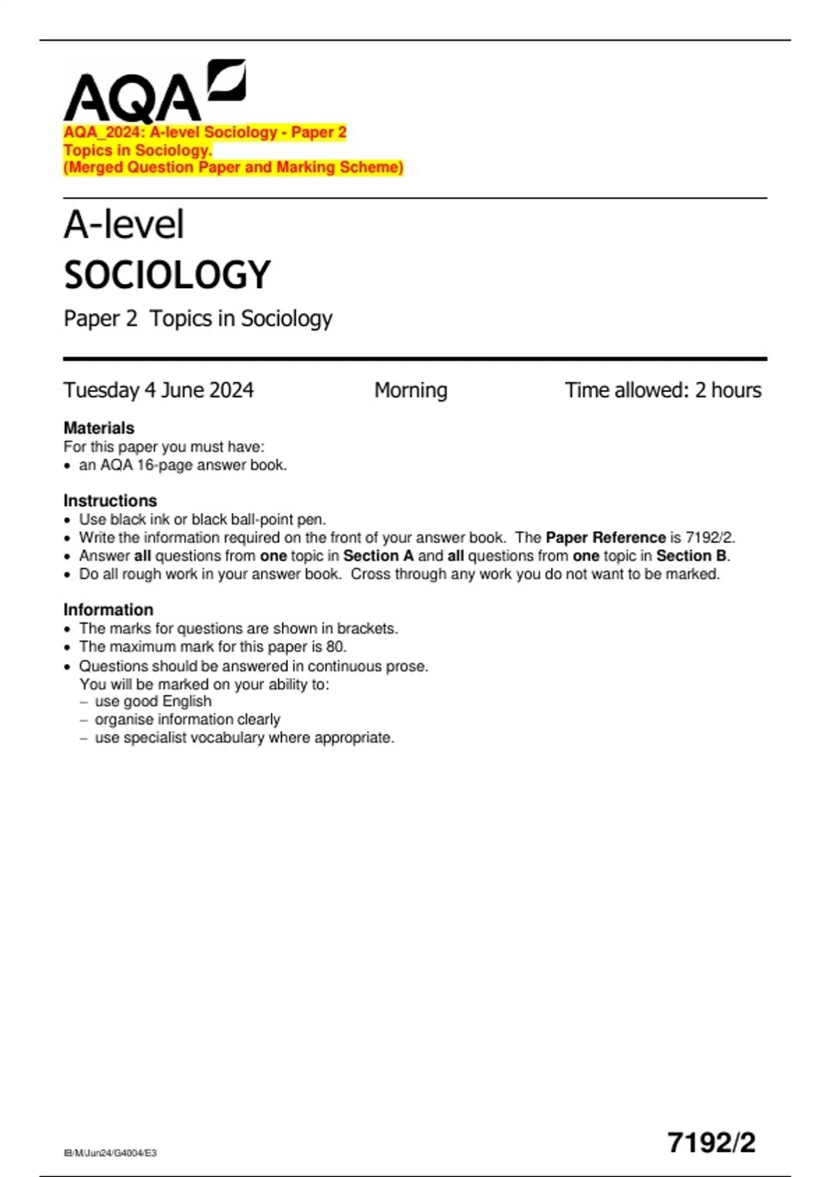 ,For A-level Sociology Paper 2 on Topics in Sociology, focus on the following key areas: