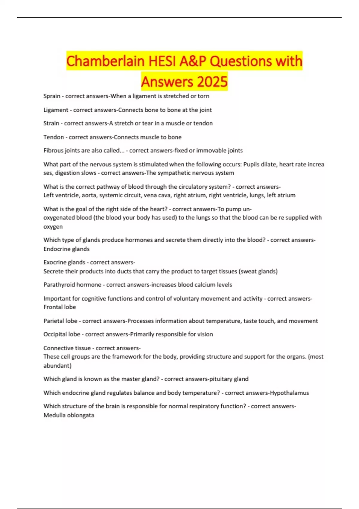 Chamberlain HESI A&P Questions with