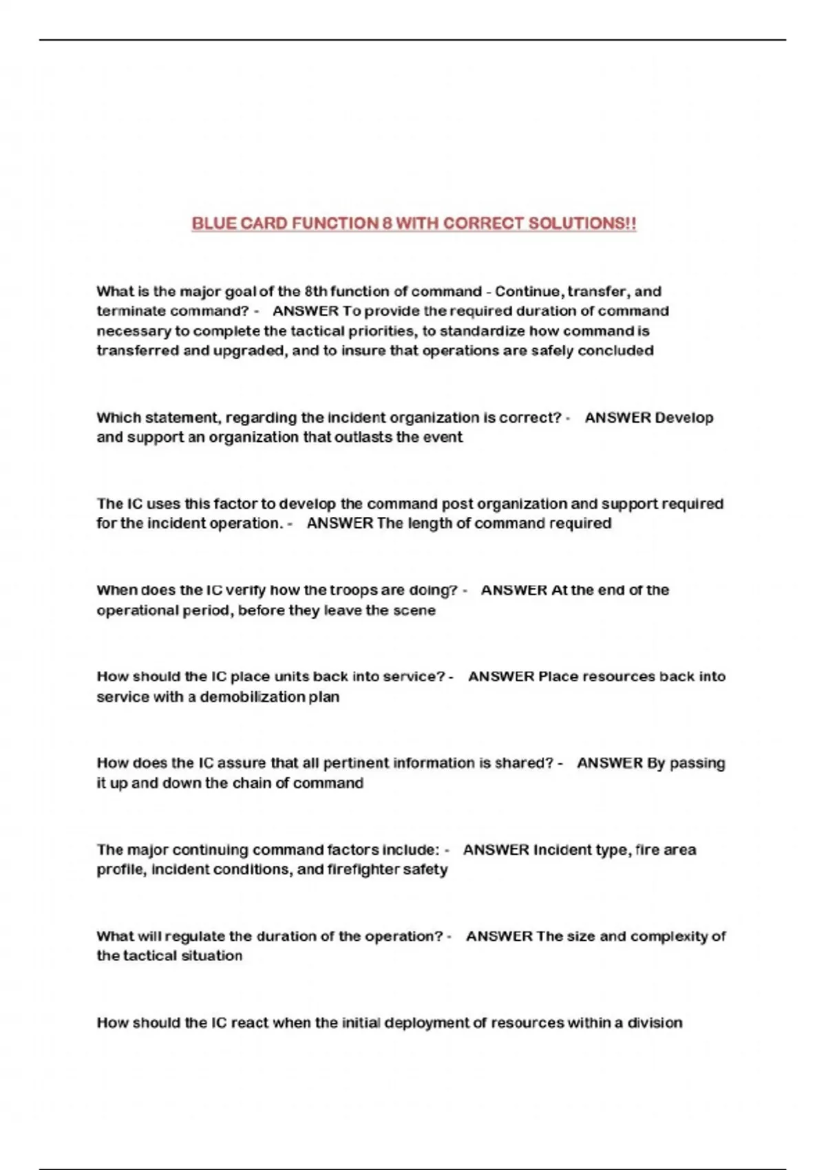 BLUE CARD FUNCTION 8 WITH CORRECT SOLUTIONS!!