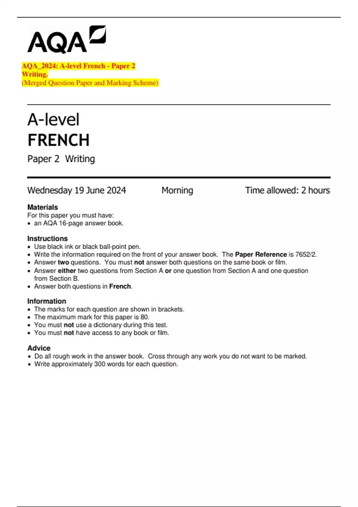 Wednesday 19 June 2024 Morning Time allowed: 2 hours