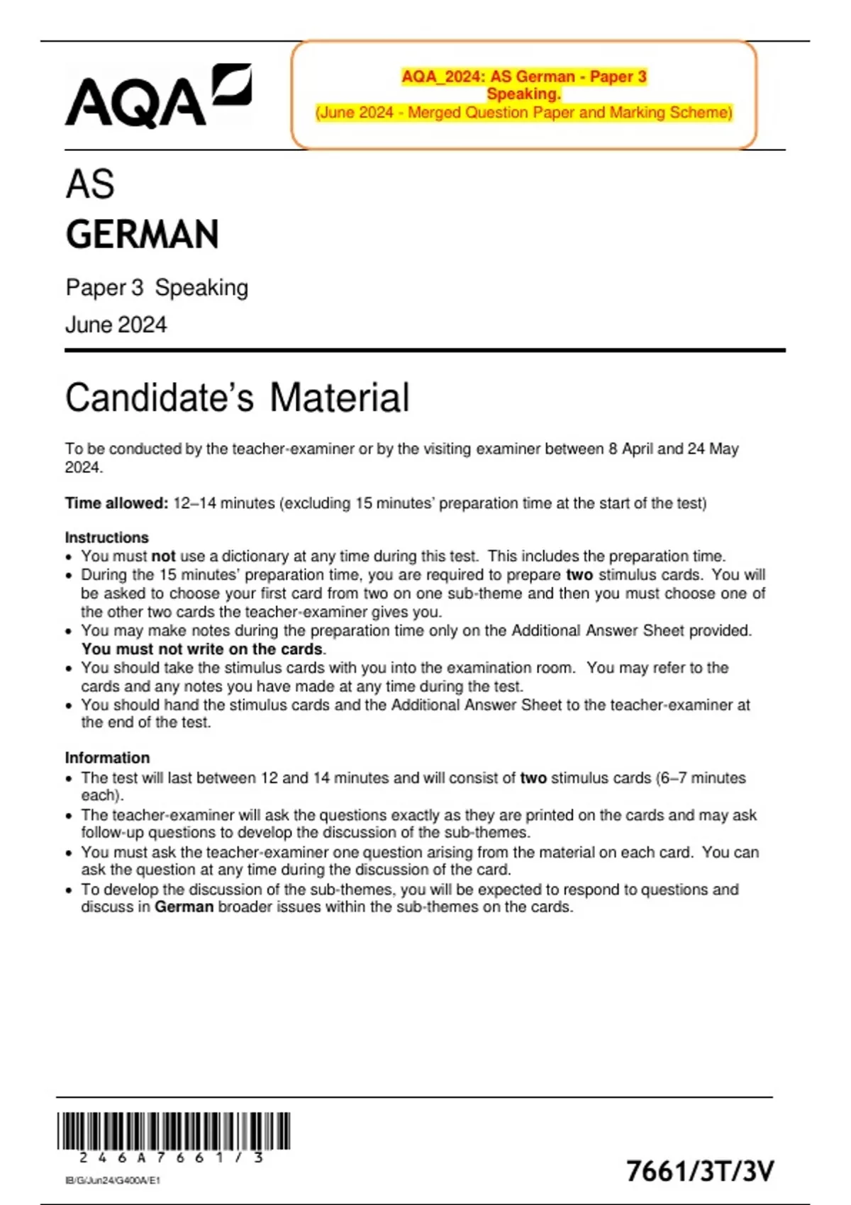 For AS German Paper 3: Speaking, focus on the following key areas: