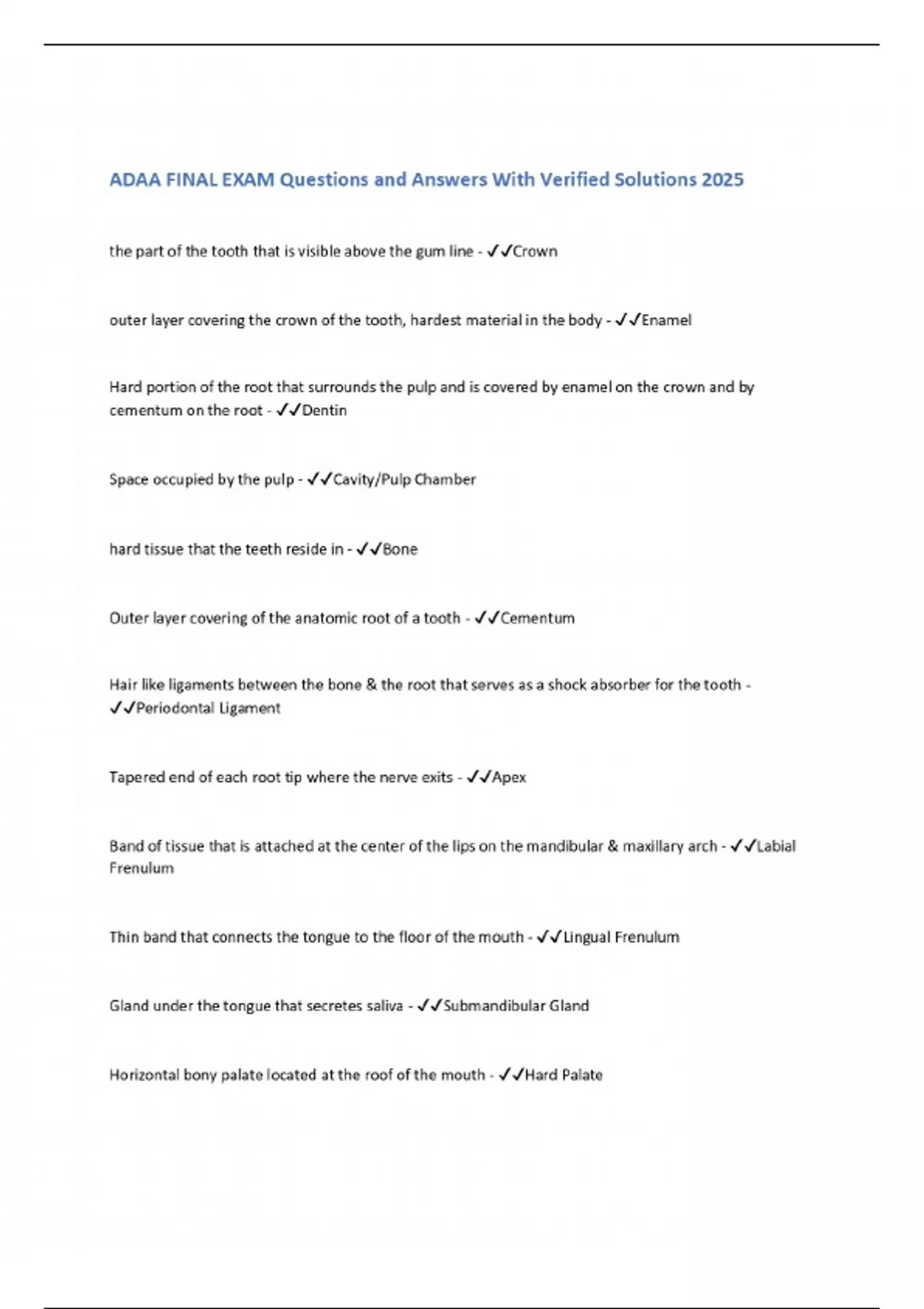 ADAA FINAL EXAM Questions and Answers With Verified Solutions 2025