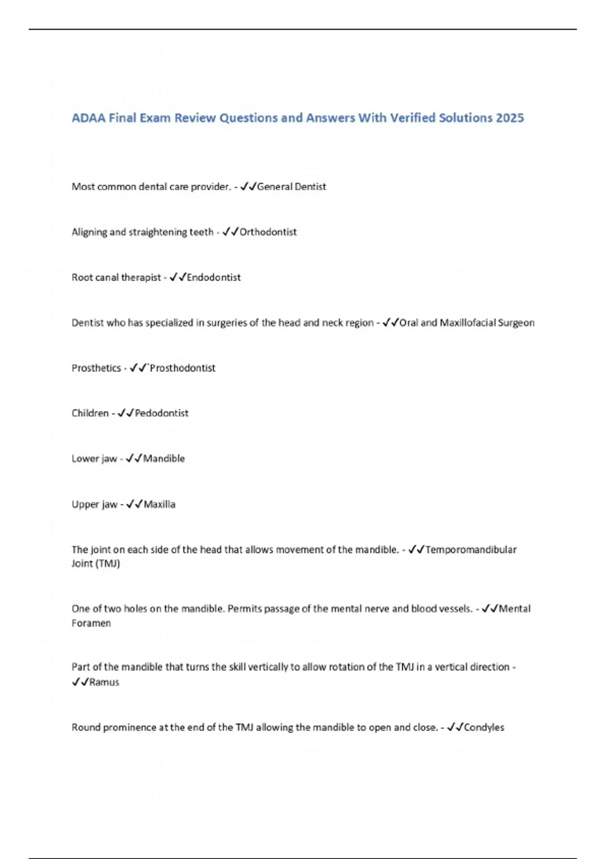 ADAA Final Exam Review Questions and Answers With Verified Solutions 2025
