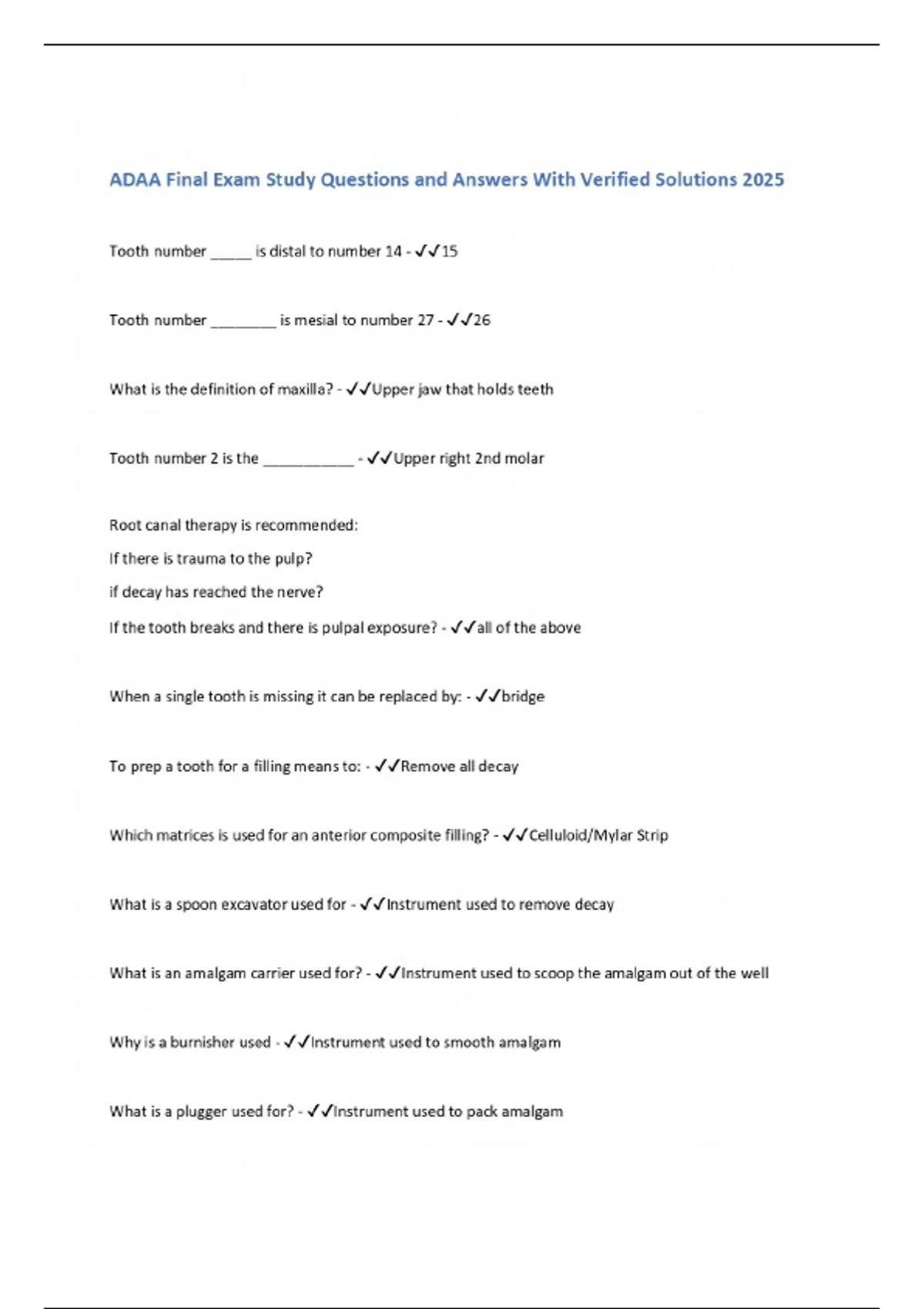 ADAA Final Exam Study Questions and Answers With Verified Solutions 2025