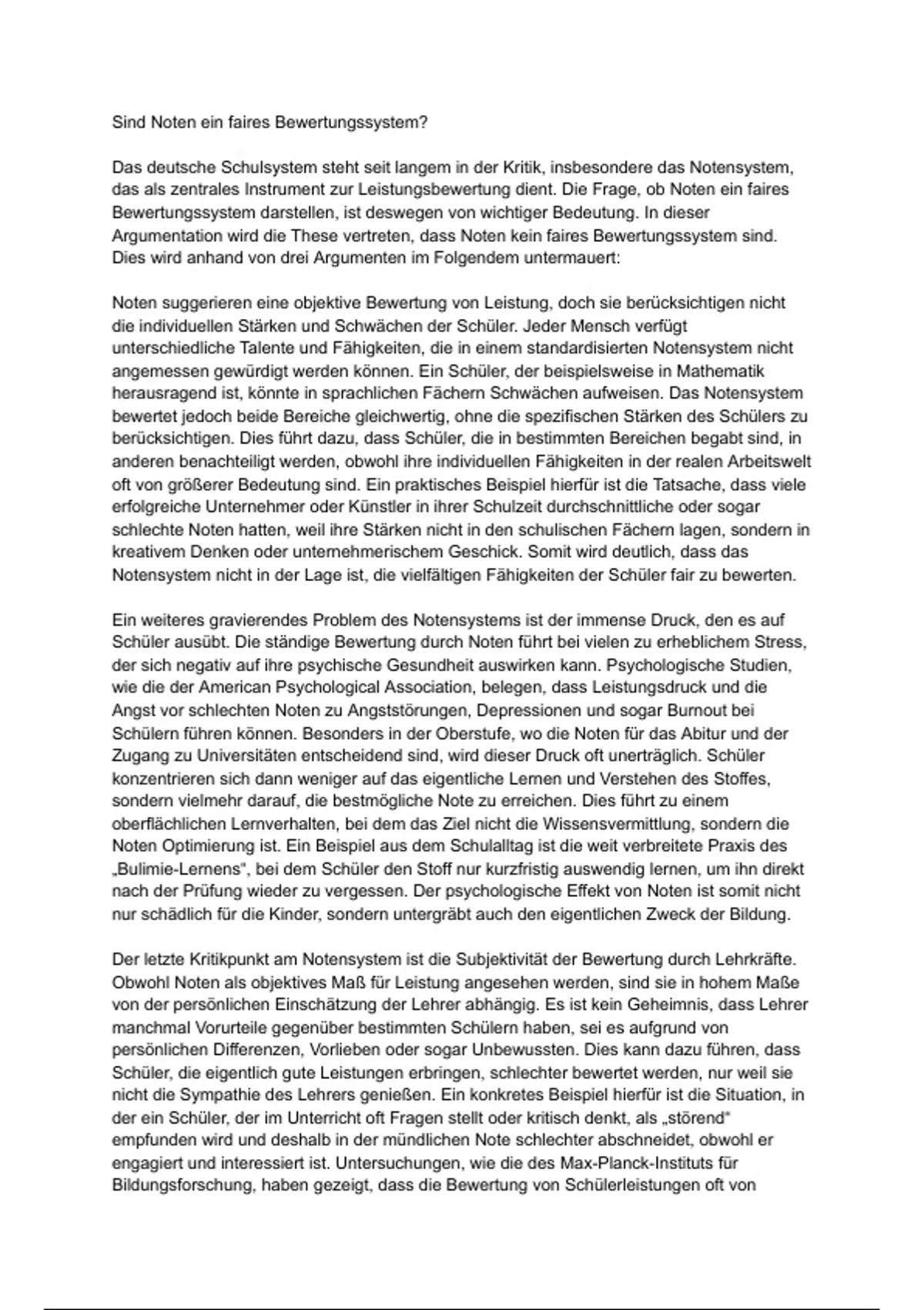 Argumentation wird die These vertreten, dass Noten kein faires Bewertungssystem sind.