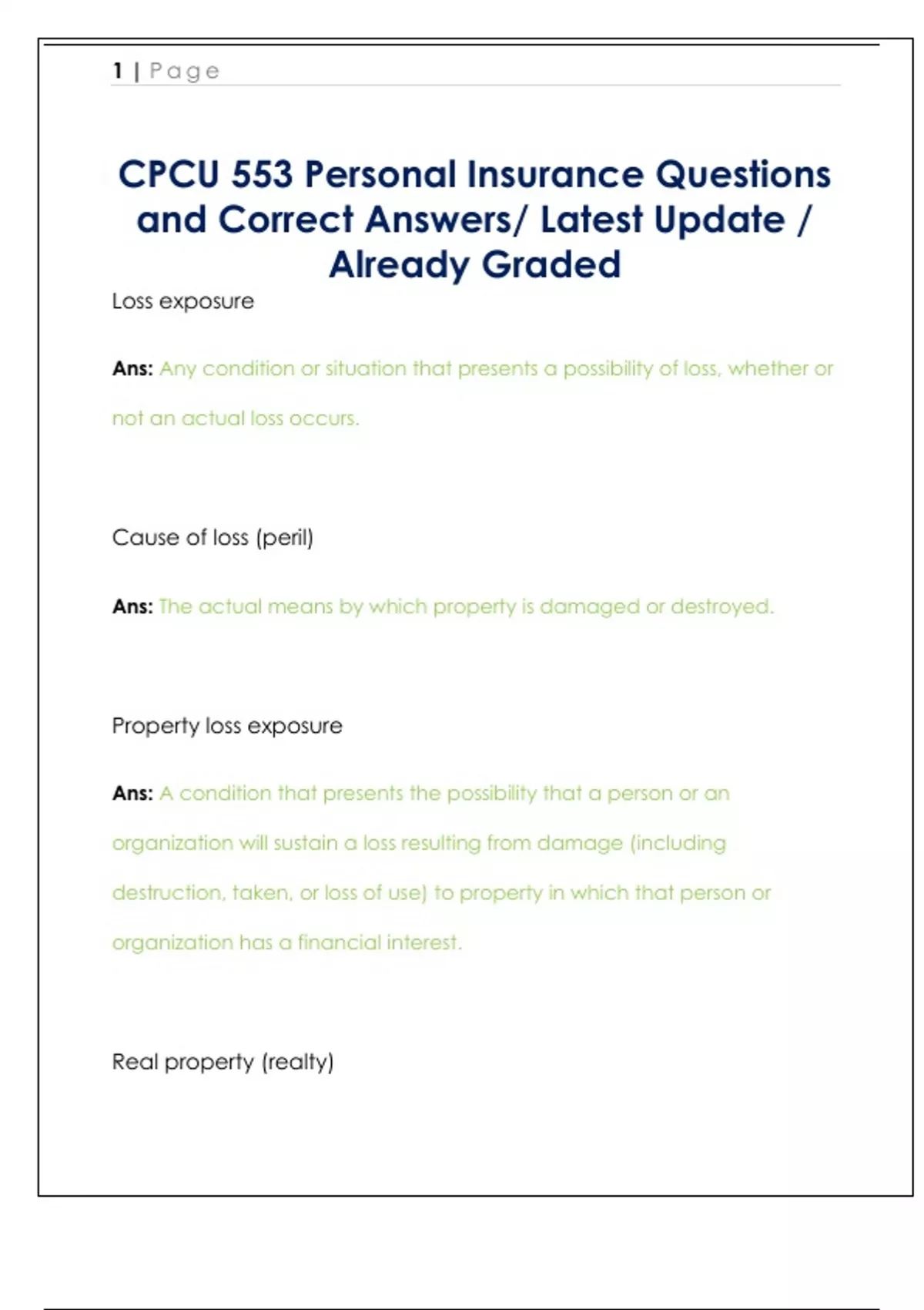 CPCU 553 Personal Insurance Questions and Correct Answers/ Latest Update / Already Graded