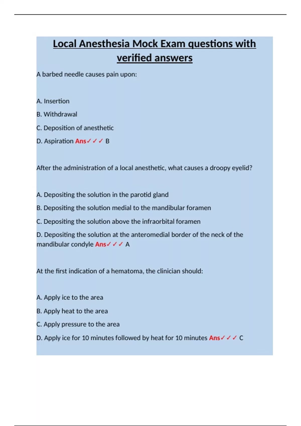 D. Needle touching pterygomandibular raphe Ans✓✓✓ B