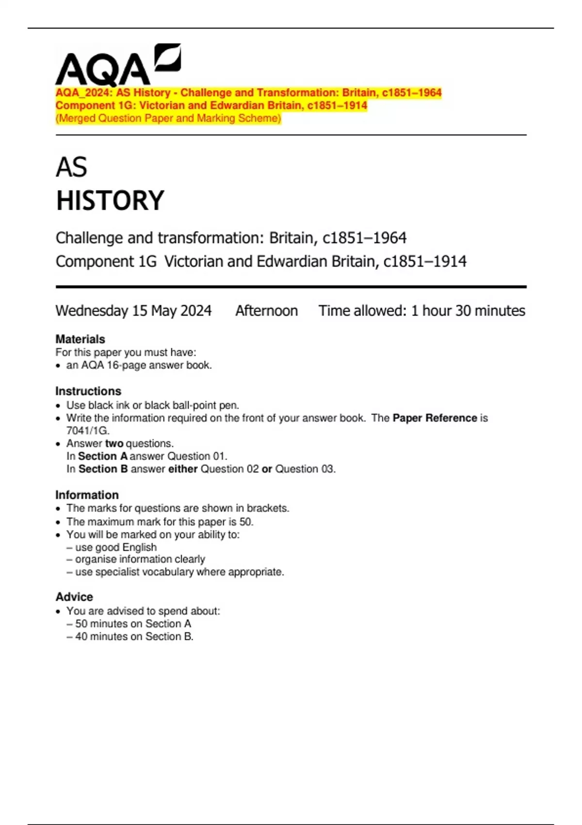 , For AS History: Challenge and Transformation: Britain, c1851–1964, Component 1G: Victorian and