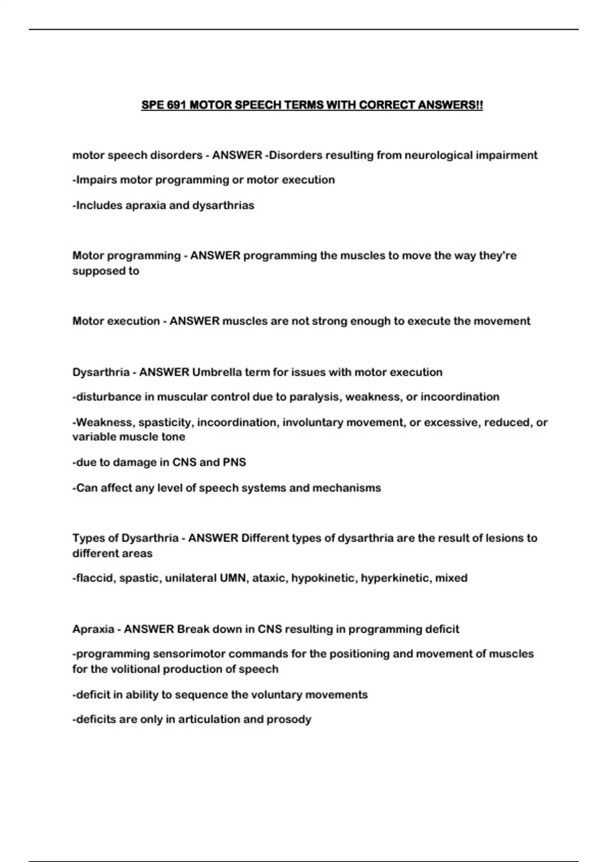 SPE 691 MOTOR SPEECH TERMS WITH CORRECT ANSWERS!!...