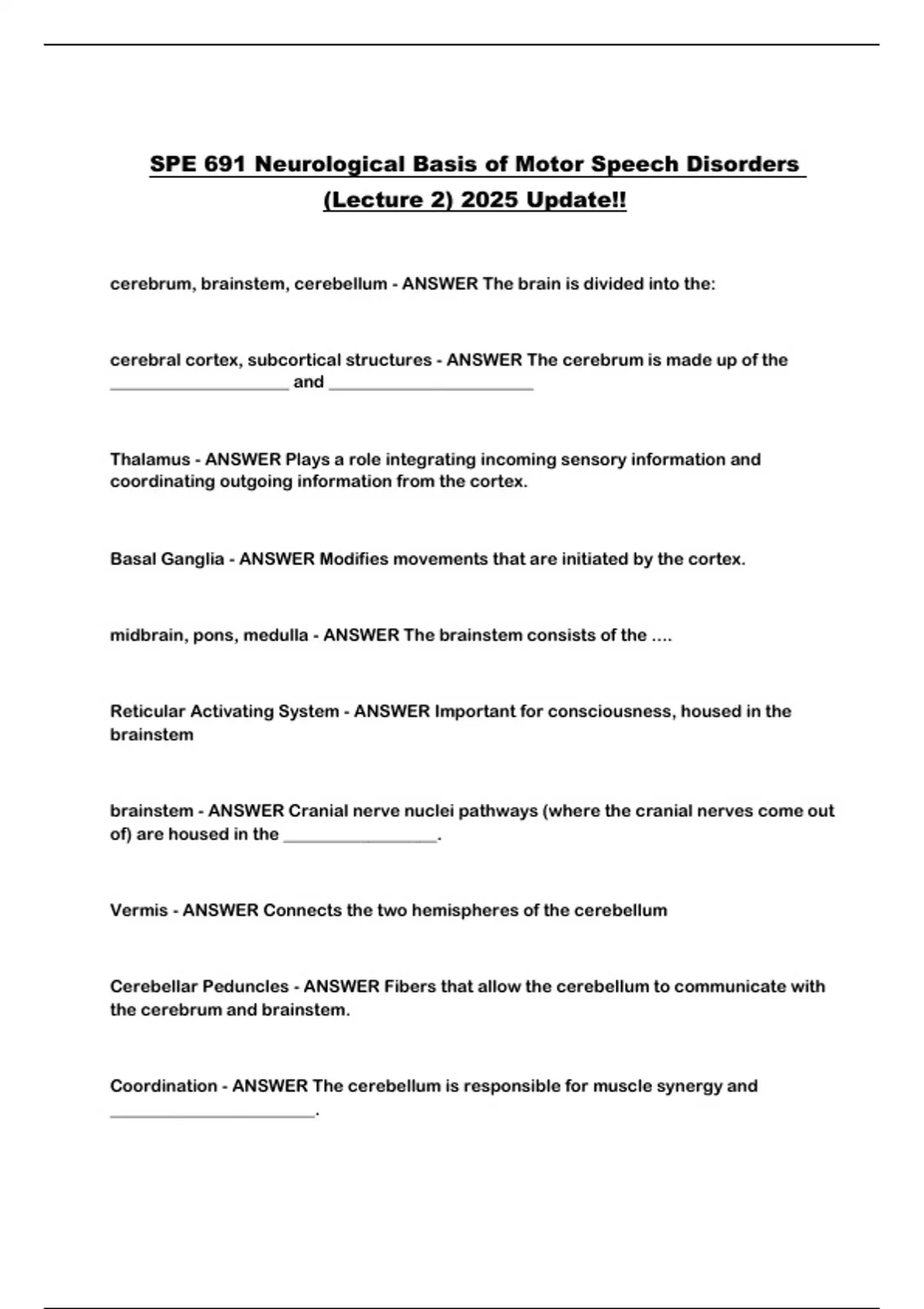SPE 691 Neurological Basis of Motor Speech Disorders (Lecture 2) 2025 Update!!...