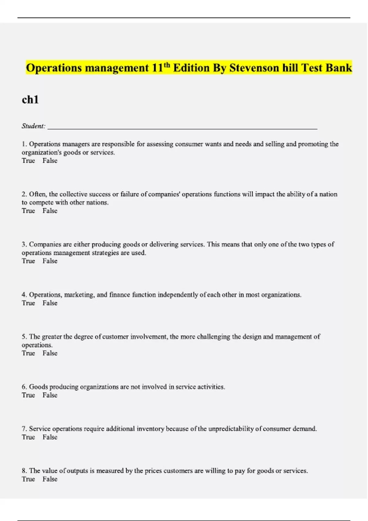 TEST BANK OPERATIONS MANAGEMENT STEVENSON 11TH EDITION CHAPTER 1-19