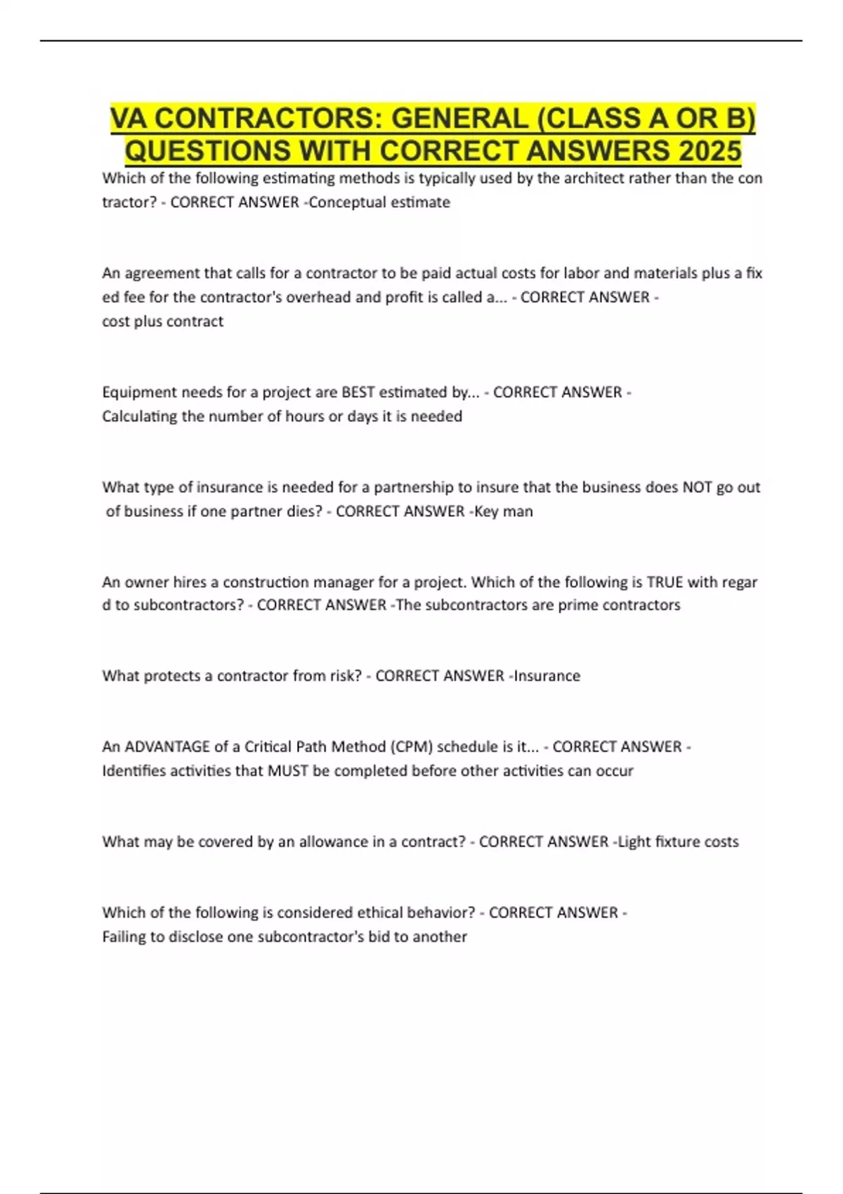 QUESTIONS WITH CORRECT ANSWERS 2025