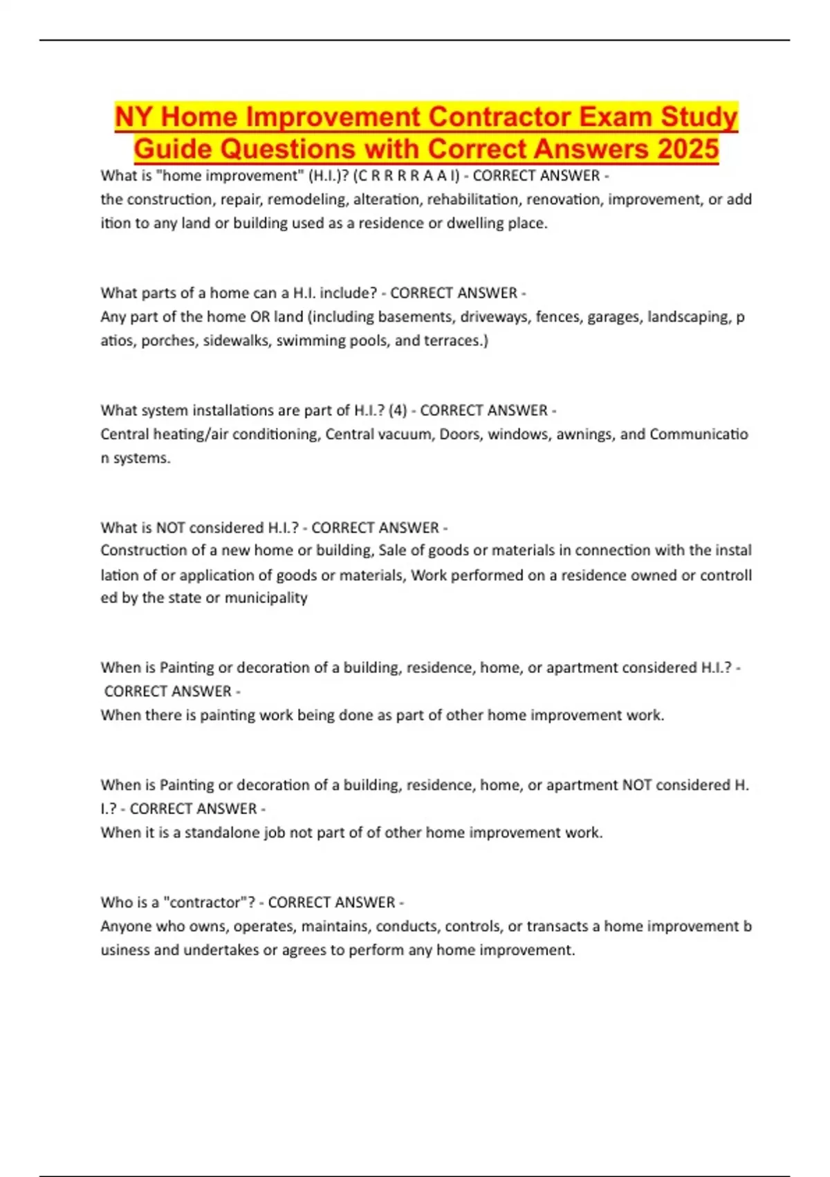 NY Home Improvement Contractor Exam Study