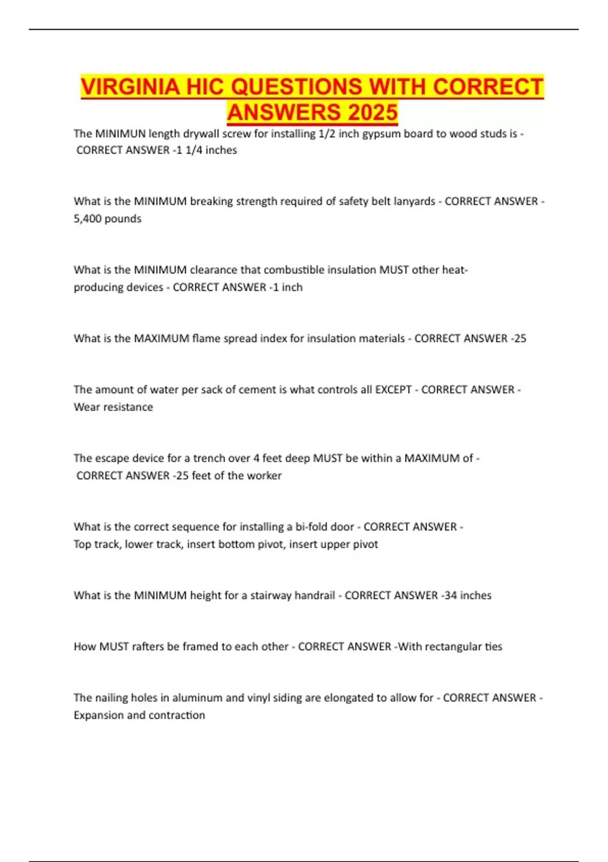 VIRGINIA HIC QUESTIONS WITH CORRECT