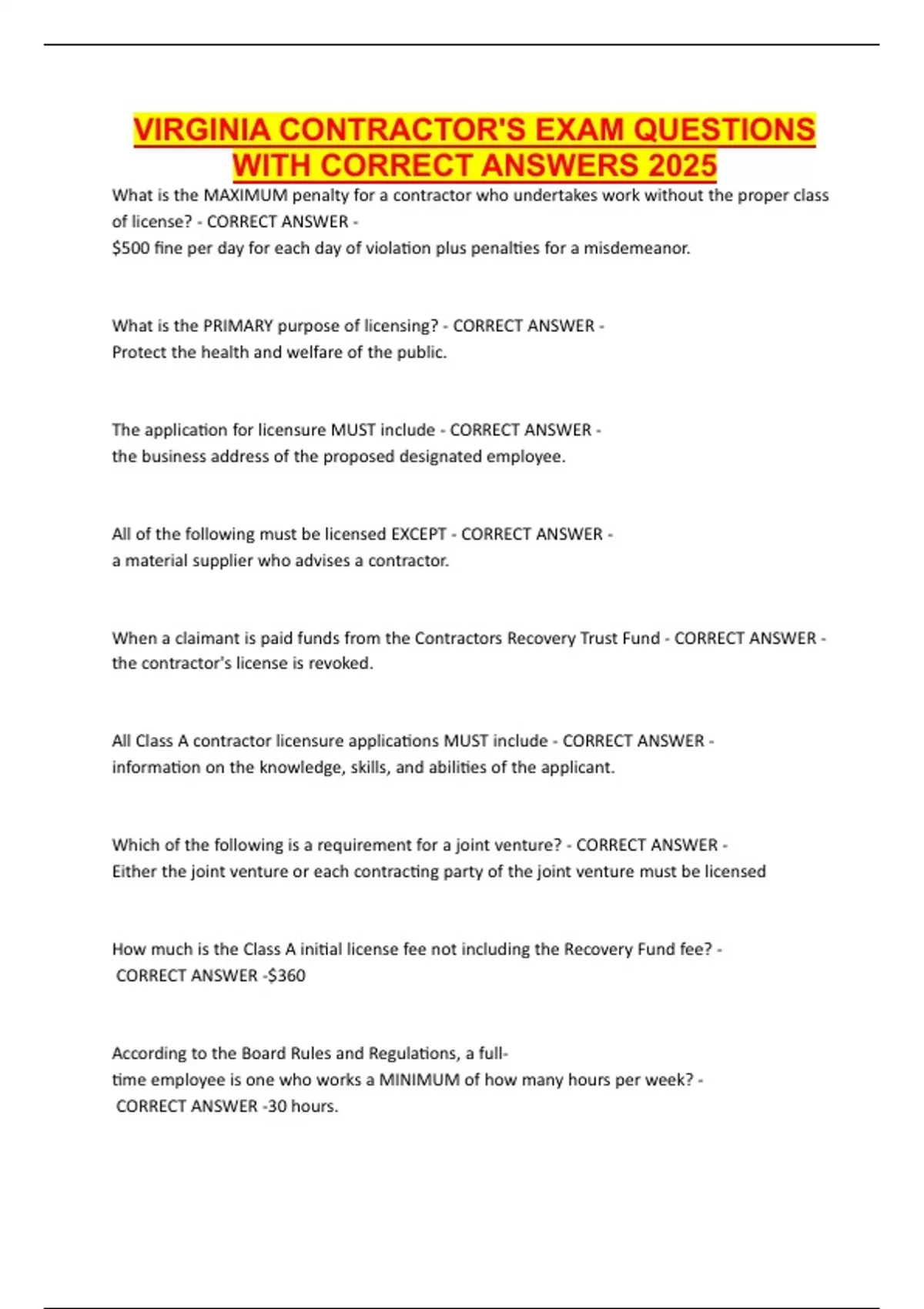 VIRGINIA CONTRACTOR'S EXAM QUESTIONS
