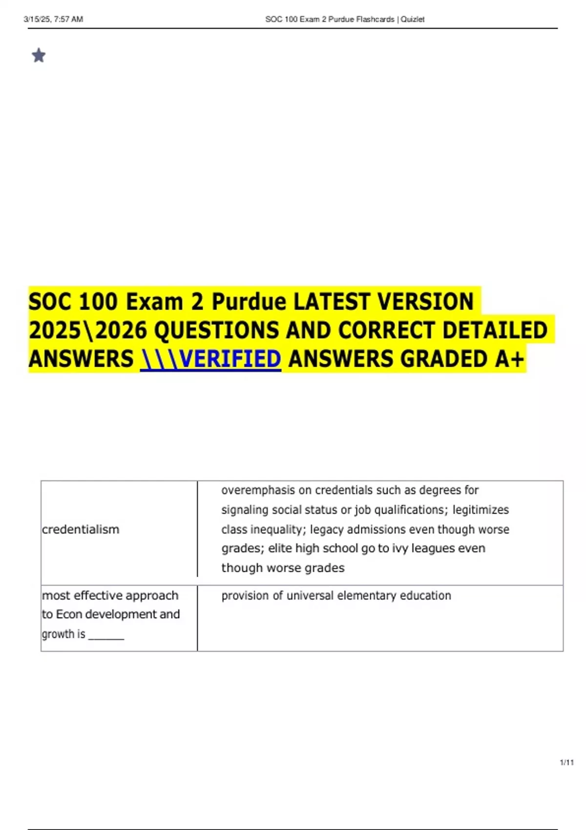 SOC 100 Exam 2 Purdue LATEST VERSION QUESTIONS AND CORRECT DETAILED ANSWERS VERIFIED ANSWERS GRADED A+