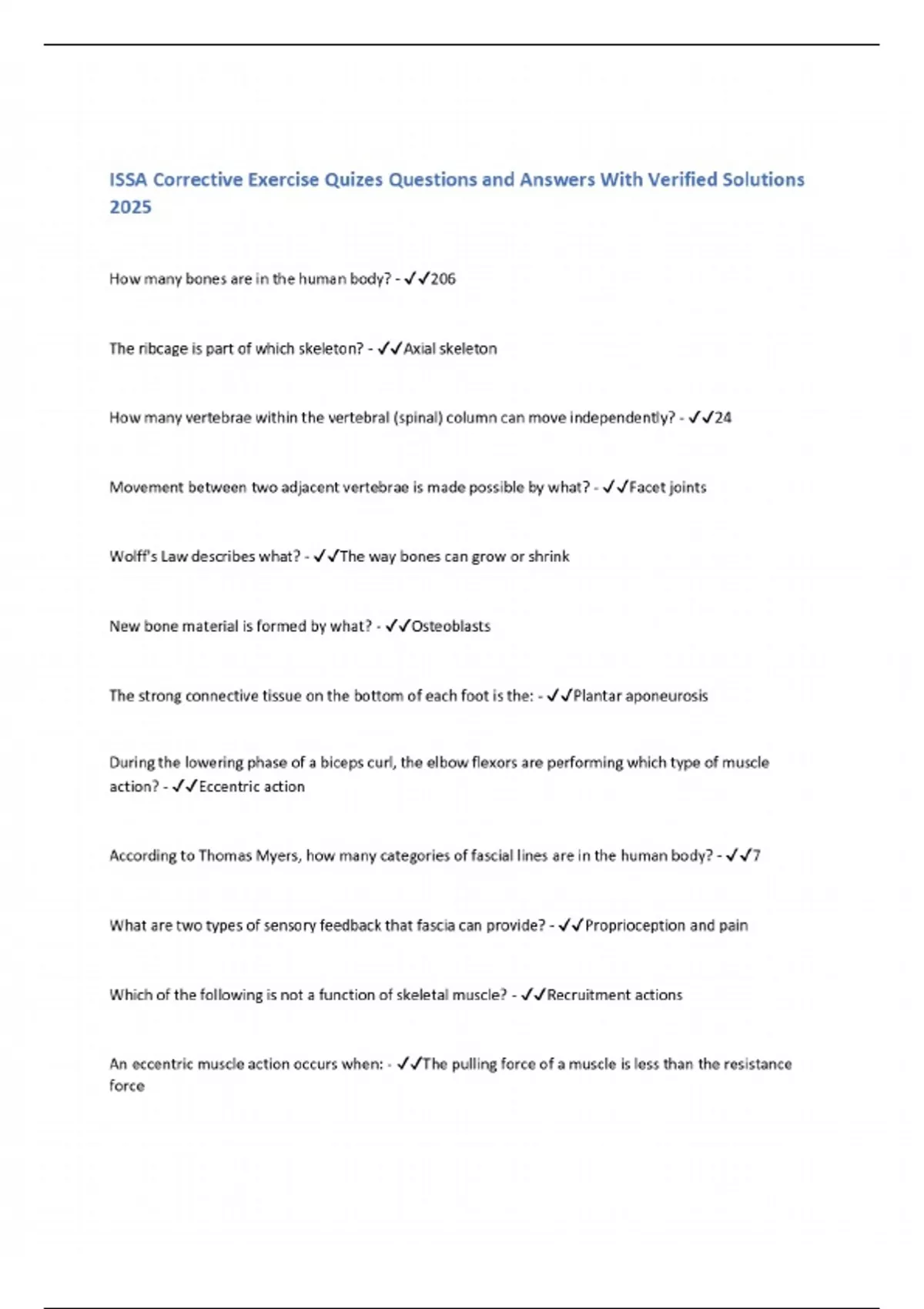 ISSA Corrective Exercise Quizes Questions and Answers With Verified Solutions 2025