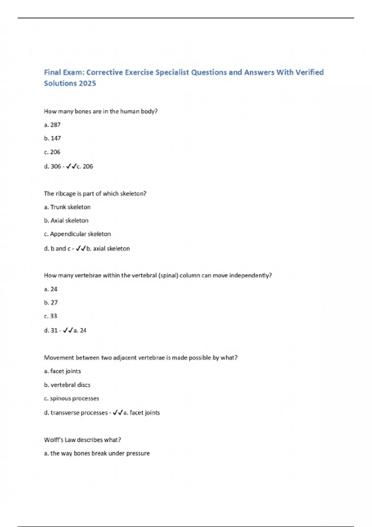 Final Exam: Corrective Exercise Specialist Questions and Answers With Verified Solutions 2025