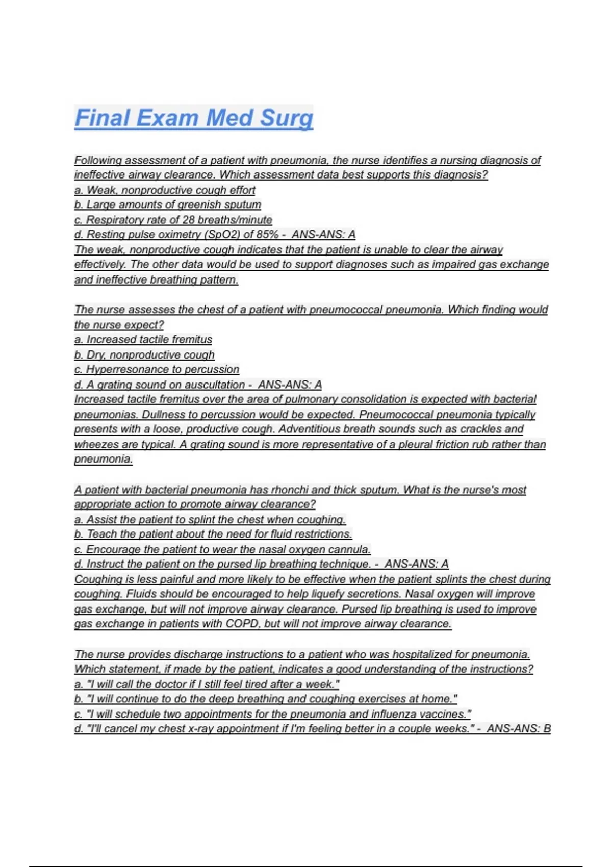 Final Exam Med Surg Questions with correct Answers 2025/2026( A+ GRADED 100% VERIFIED).
