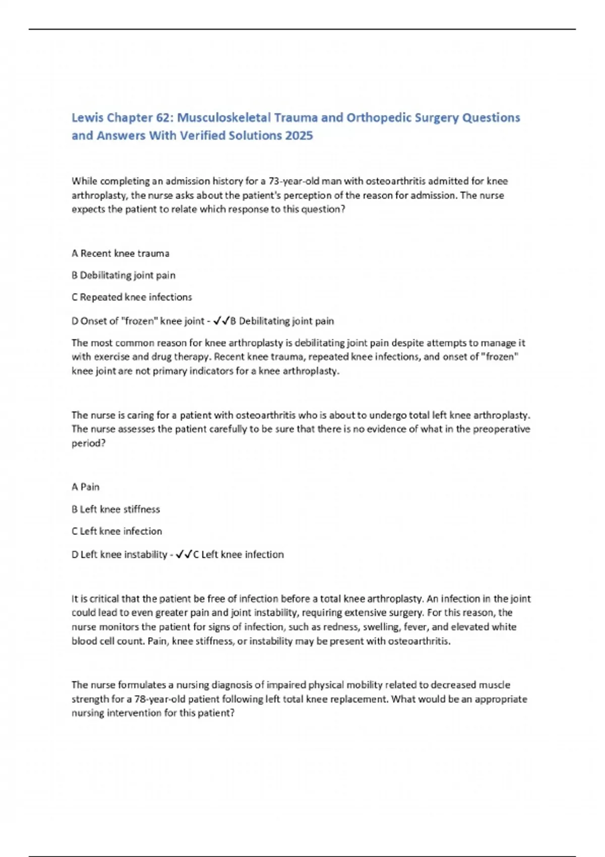 Lewis Chapter 62: Musculoskeletal Trauma and Orthopedic Surgery Questions and Answers With Verified Solutions 2025