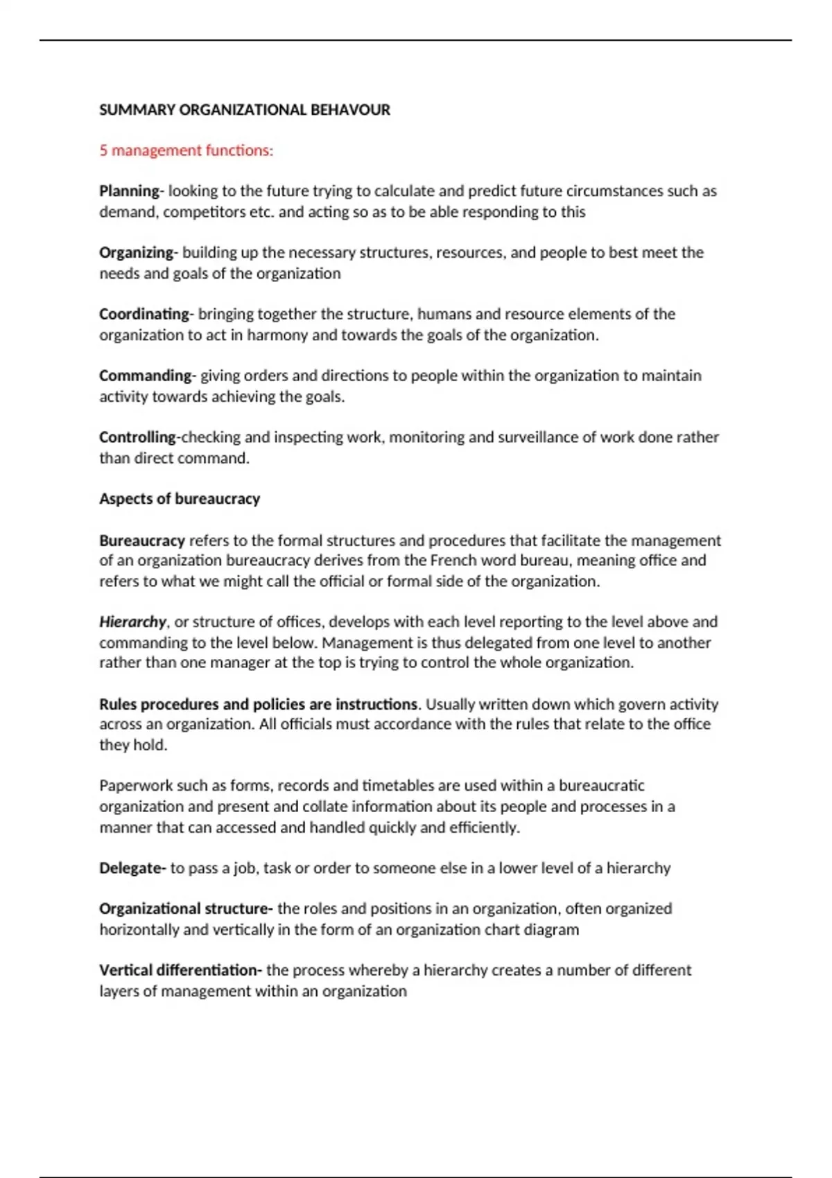 SUMMARY ORGANIZATIONAL BEHAVOUR