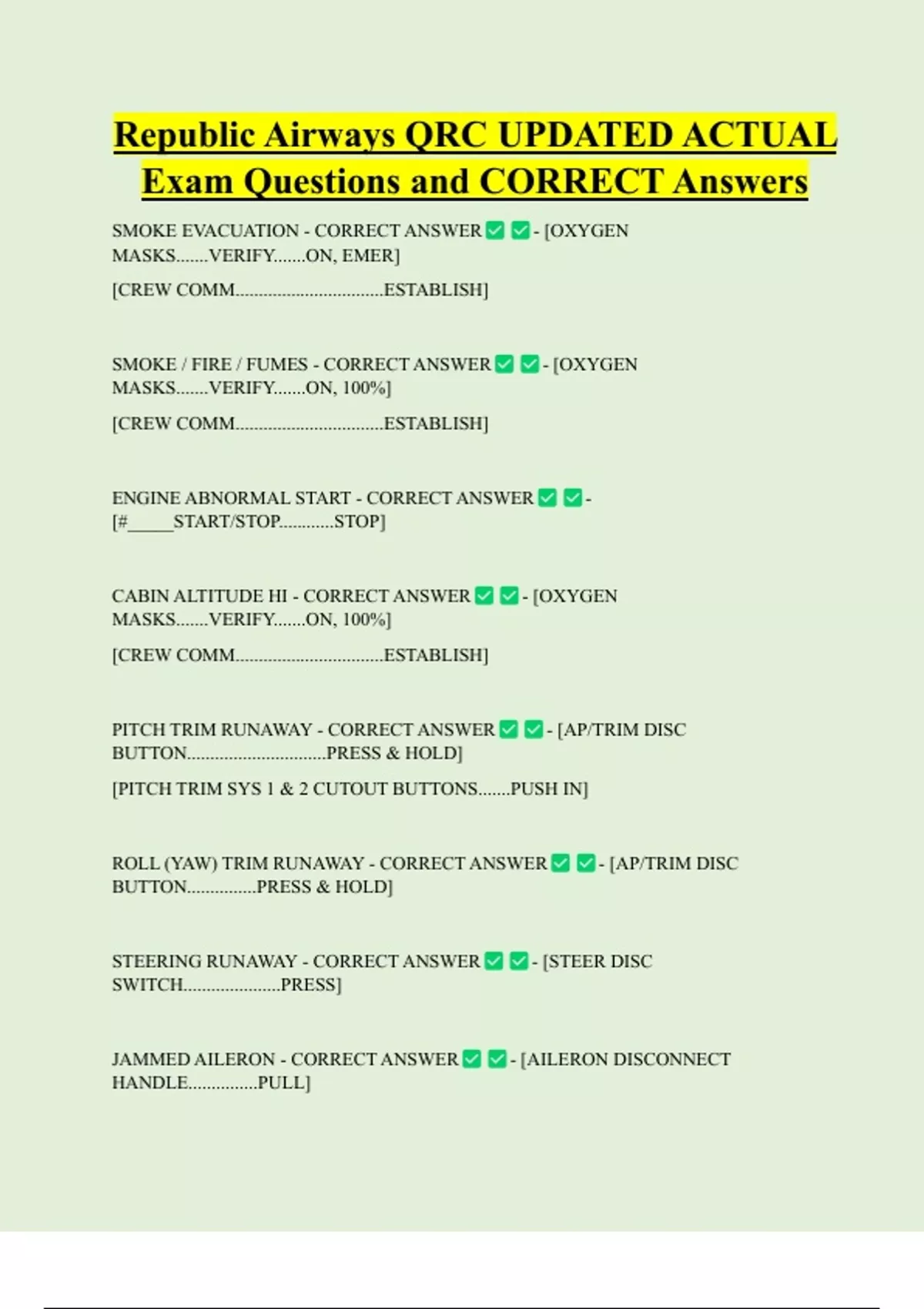 ENGINE ABNORMAL START - CORRECT ANSWER -