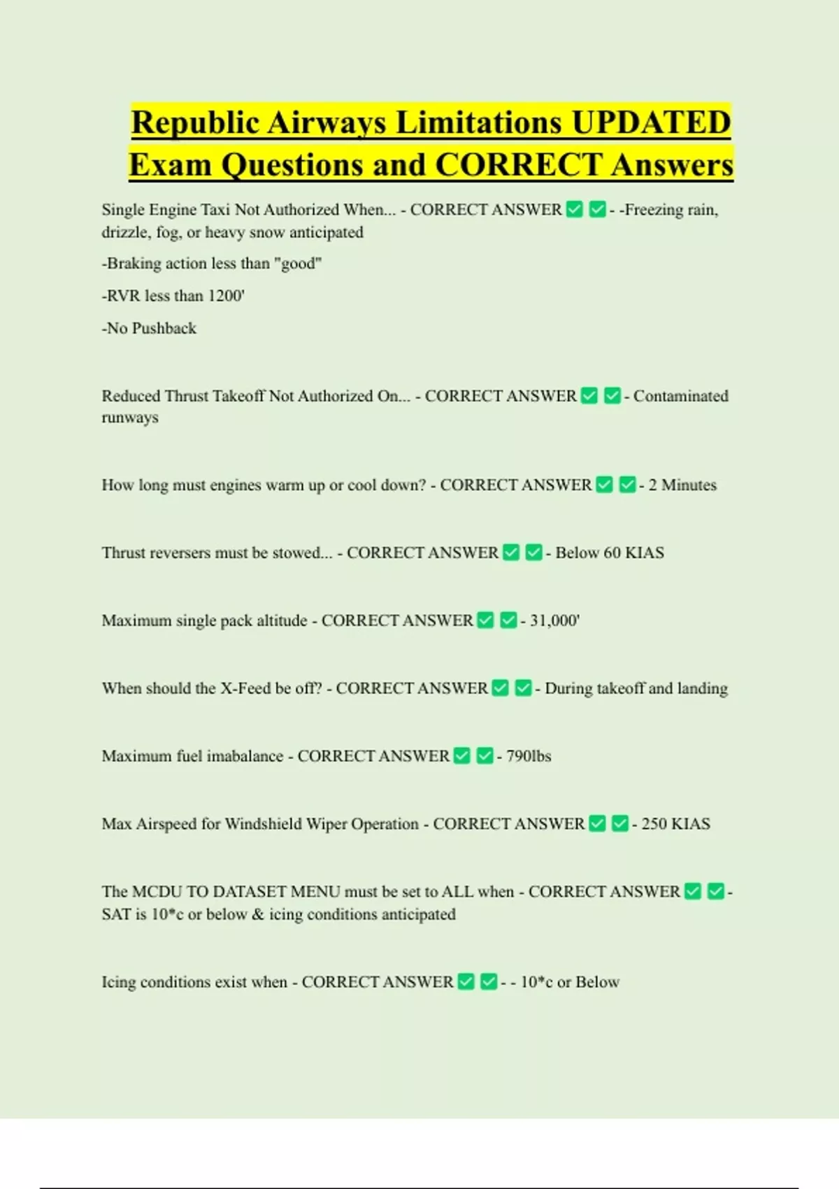 Reduced Thrust Takeoff Not Authorized On... - CORRECT ANSWER - Contaminated