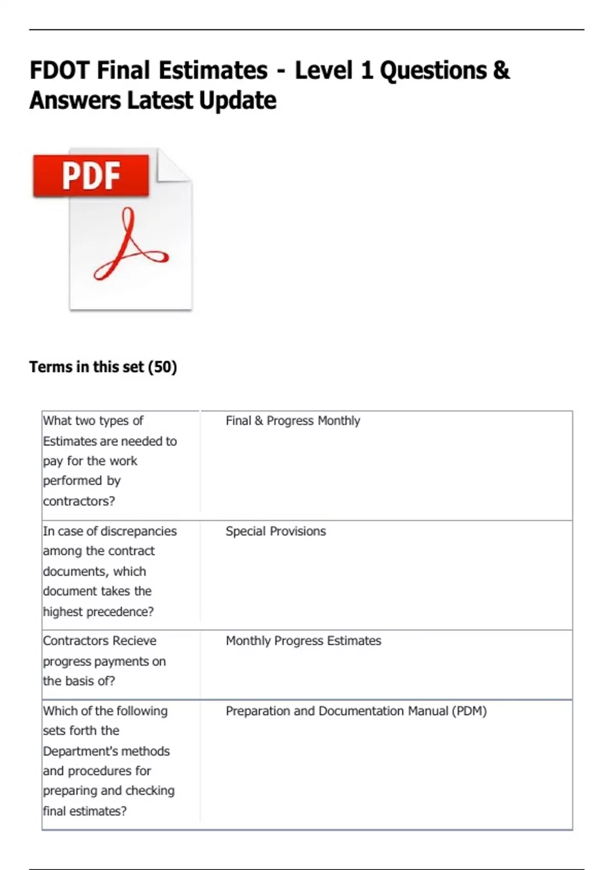 FDOT Final Estimates - Level 1 Questions &