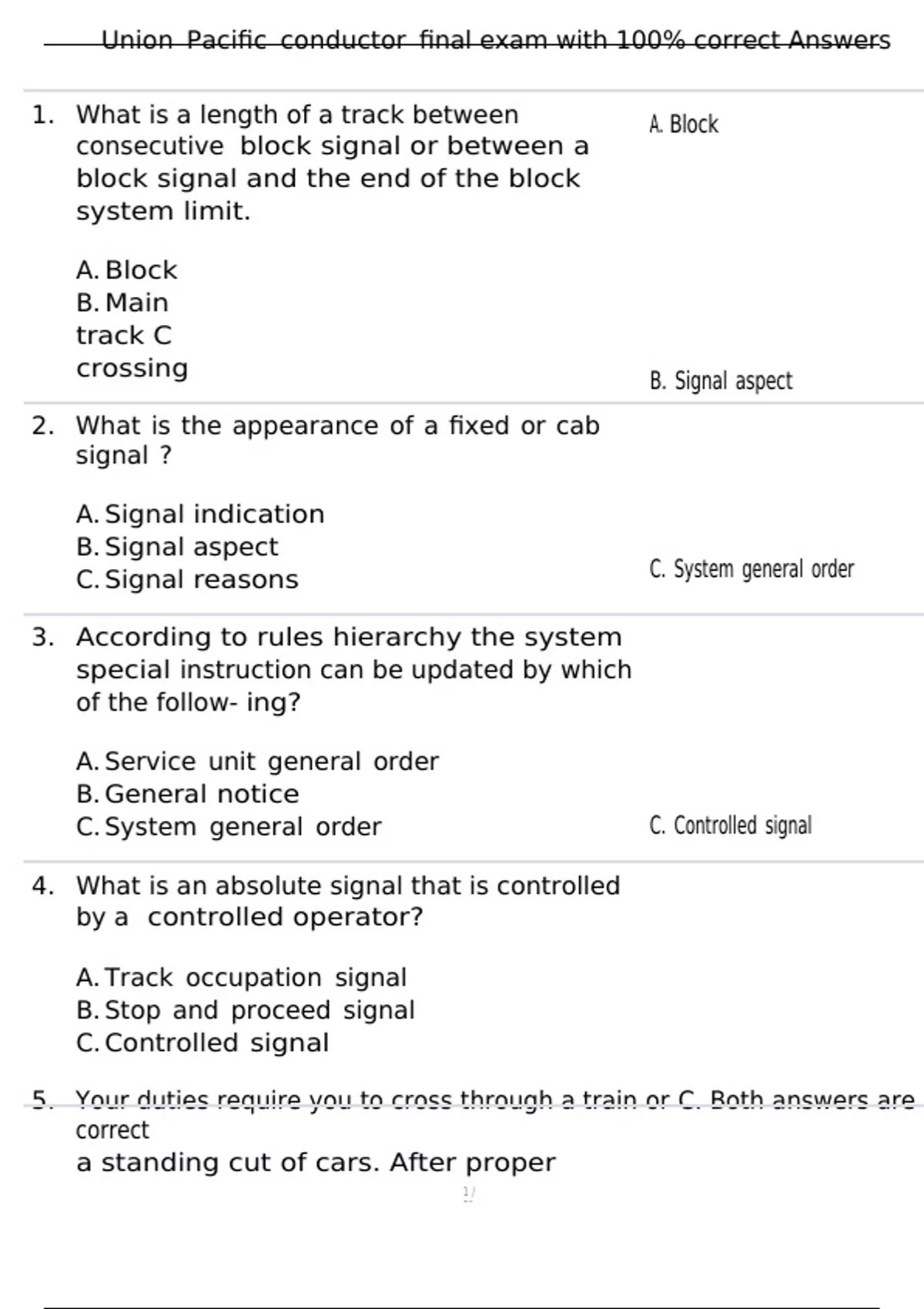 , Union Pacific conductor final exam with 100% correct Answers