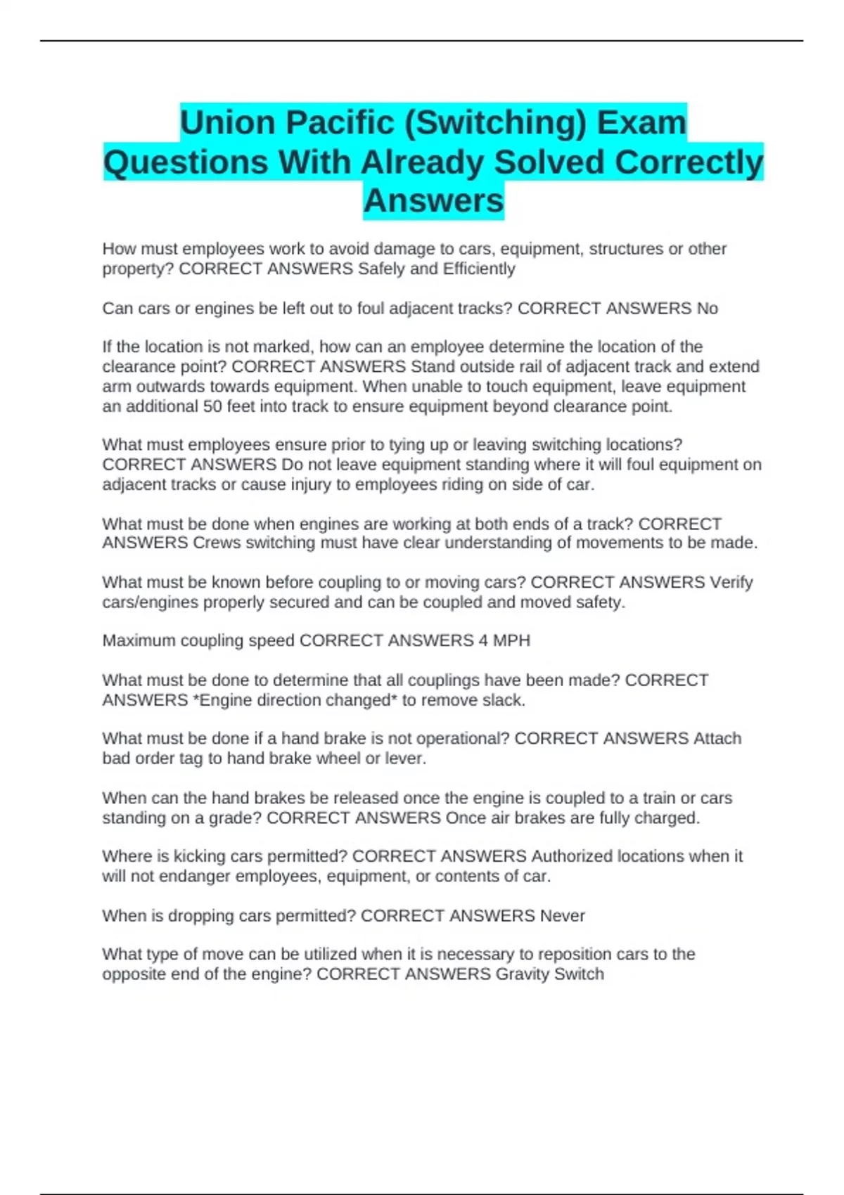 What must be known before coupling to or moving cars? CORRECT ANSWERS Verify