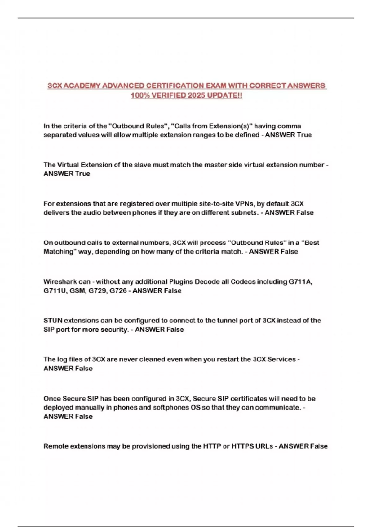 3CX ACADEMY ADVANCED CERTIFICATION EXAM WITH CORRECT ANSWERS 100% VERIFIED 2025 UPDATE!!...