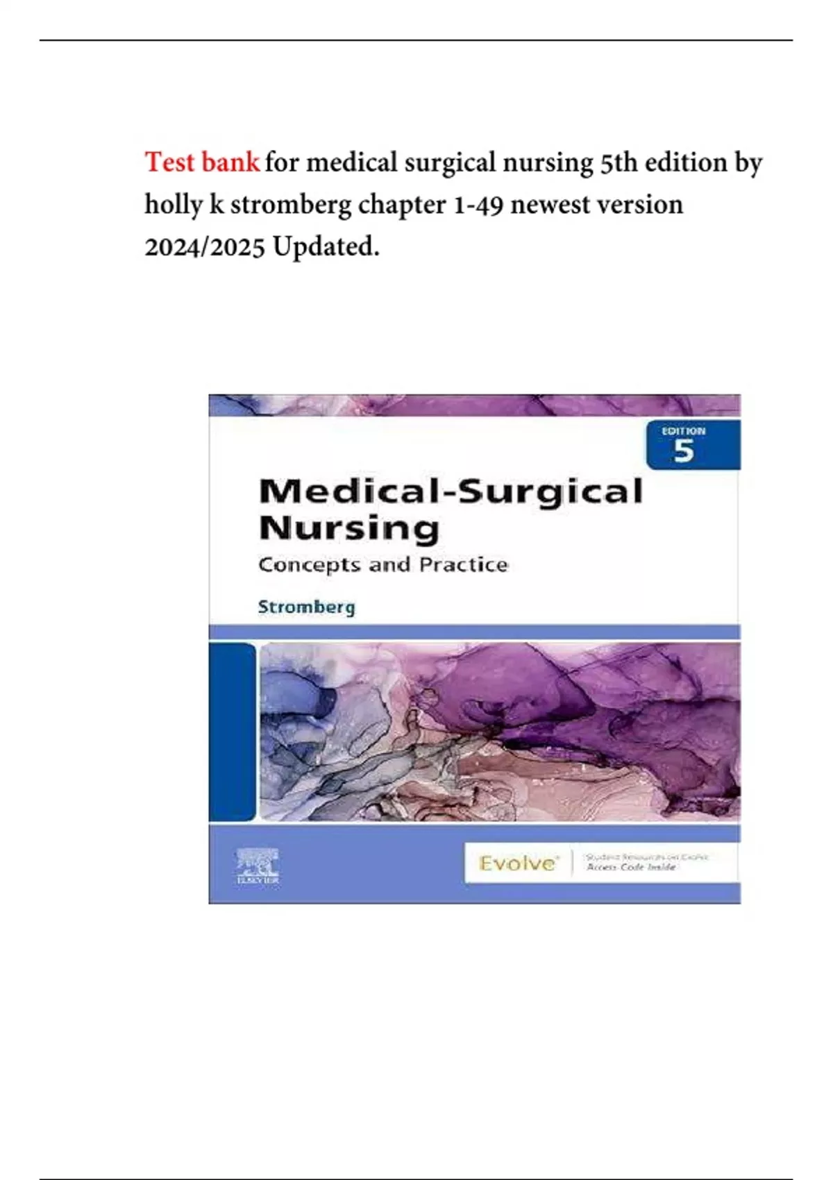 TEST BANK Medical-Surgical Nursing Concepts & Practice (5TH) by Holly Stromberg| Complete Guide NEWEST VERSION