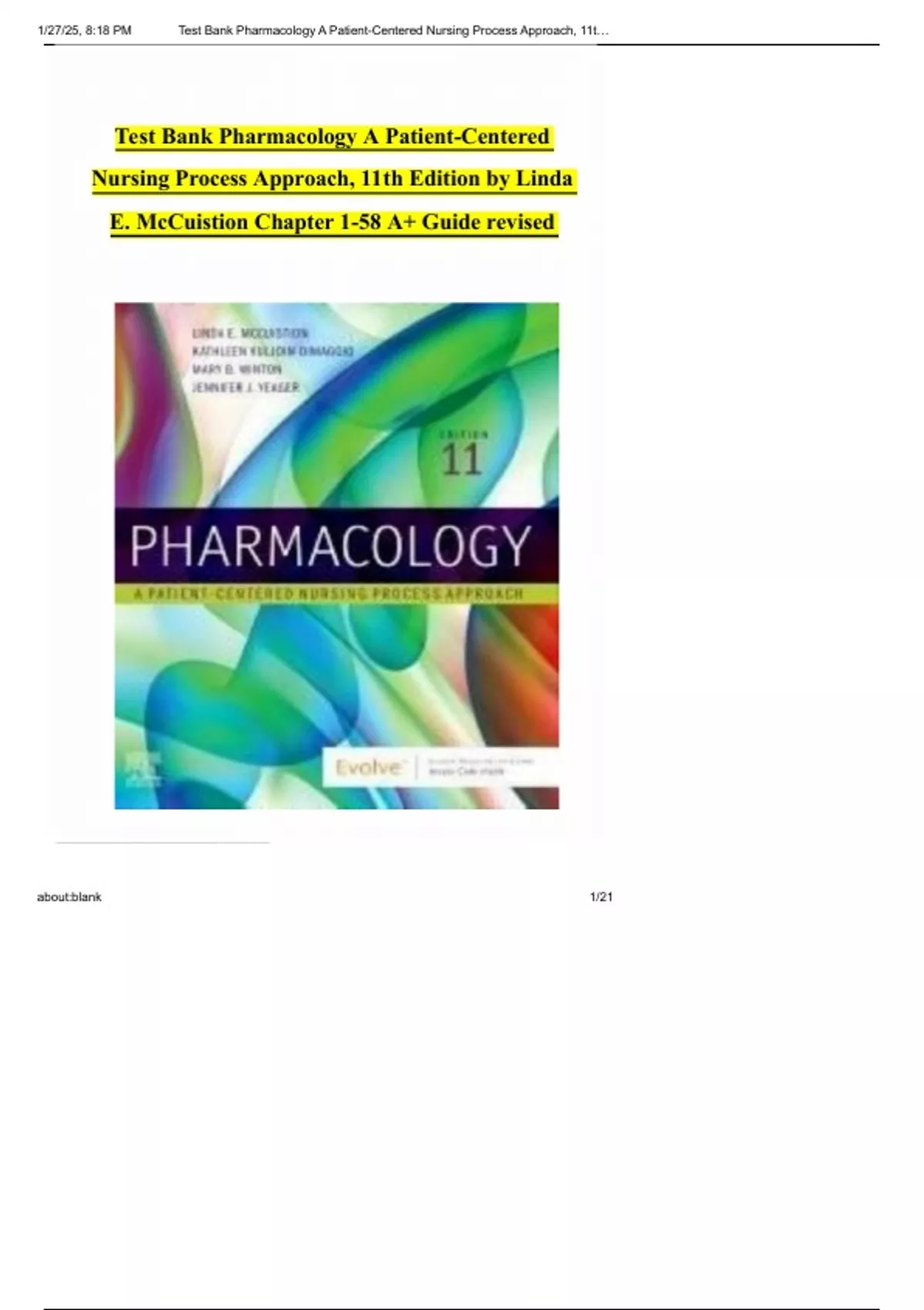 1/27/25, 8:18 PM Test Bank Pharmacology A Patient-Centered Nursing Process Approach, 11t…