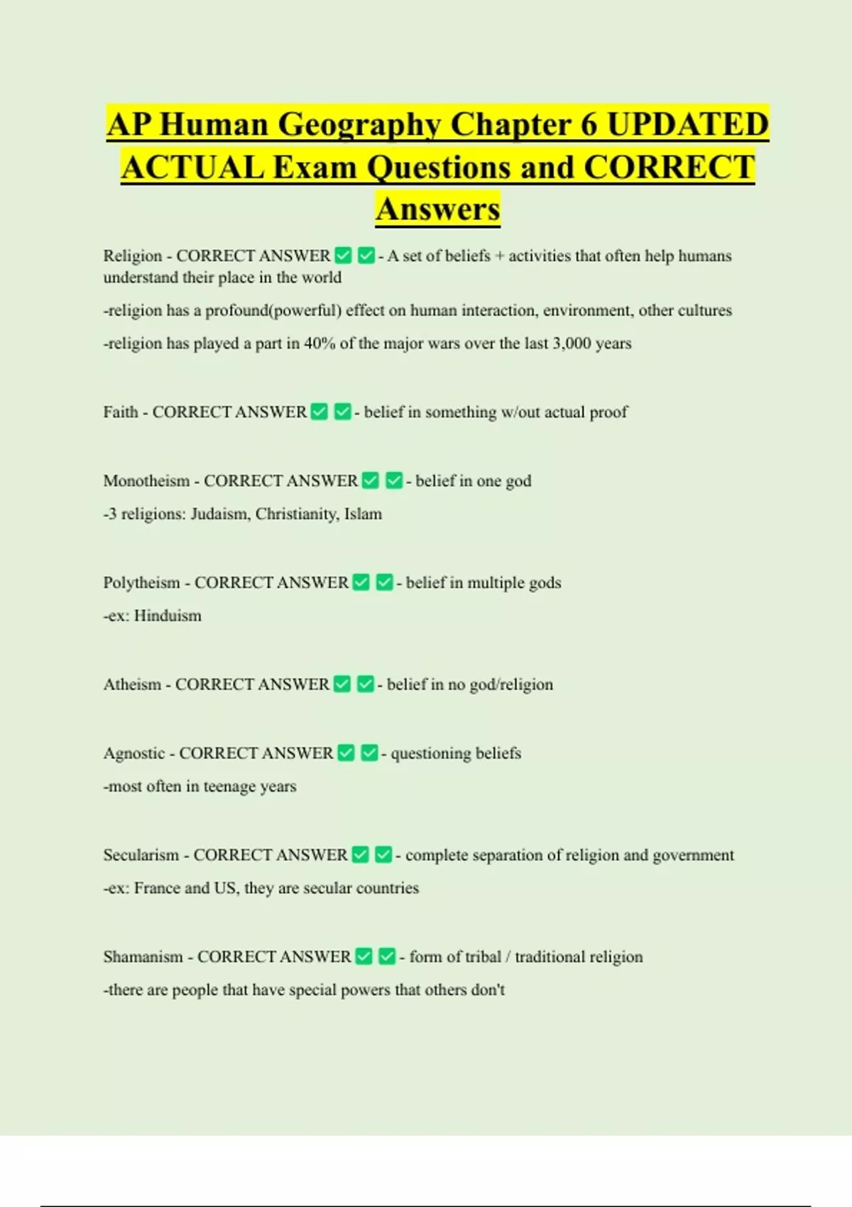 Ethnic Religion - CORRECT ANSWER - includes 1 area or 1 people