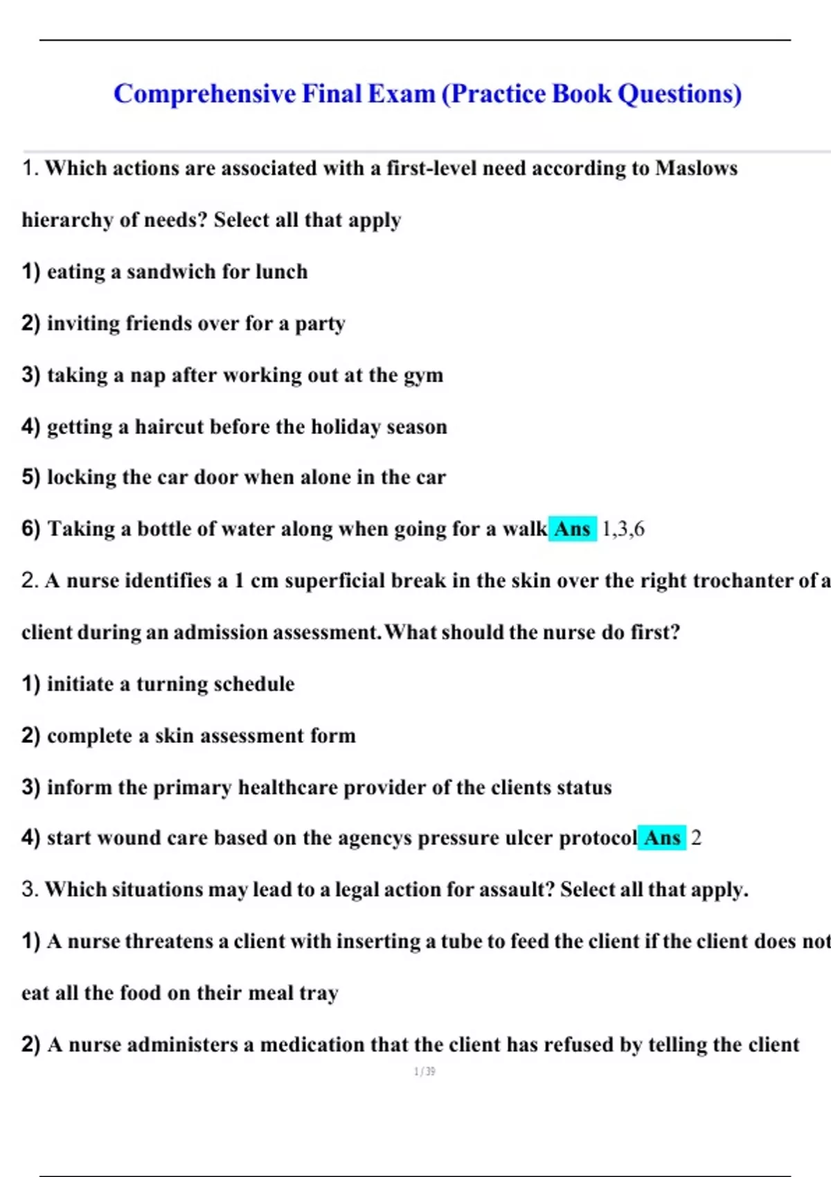 Comprehensive Final Exam (Practice Book Questions)(2025/2026)
