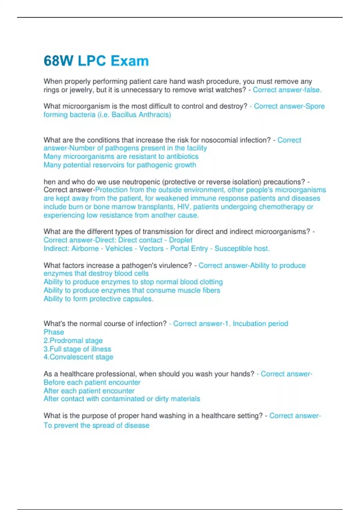 What's the normal course of infection? - Correct answer-1. Incubation period