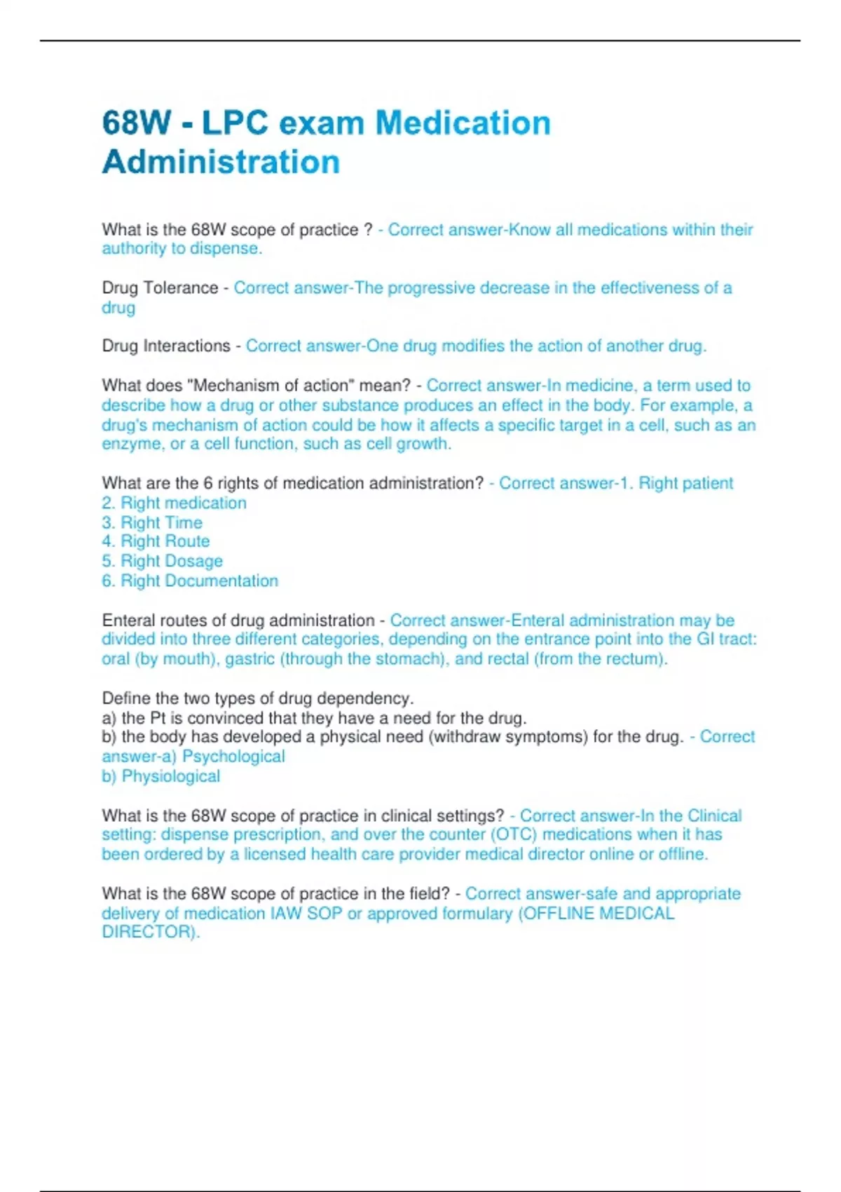 68W - LPC exam Medication Administration Actual Questions and Answers|2025 Update|100% Correct