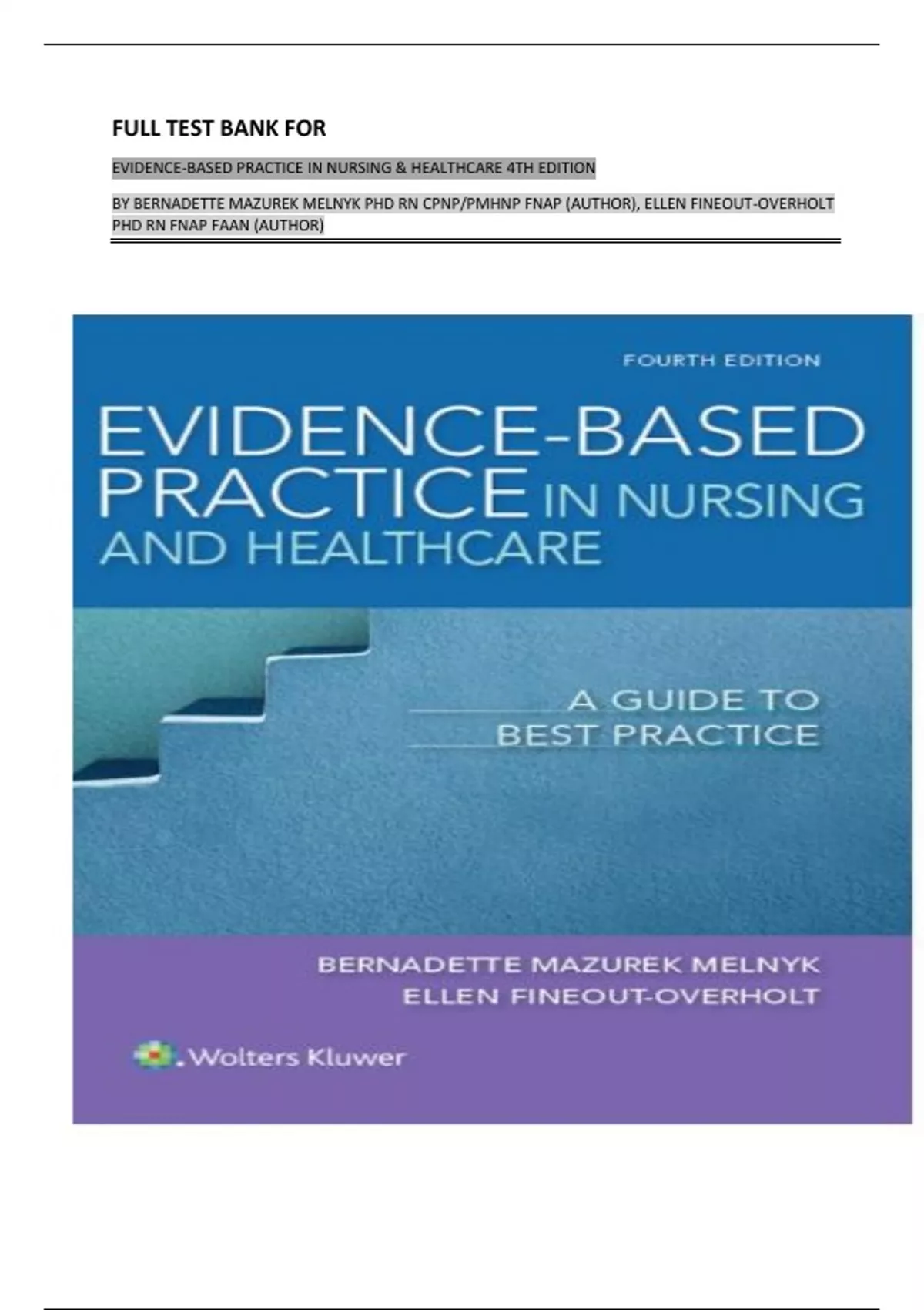EVIDENCE-BASED PRACTICE IN NURSING & HEALTHCARE 4TH EDITION