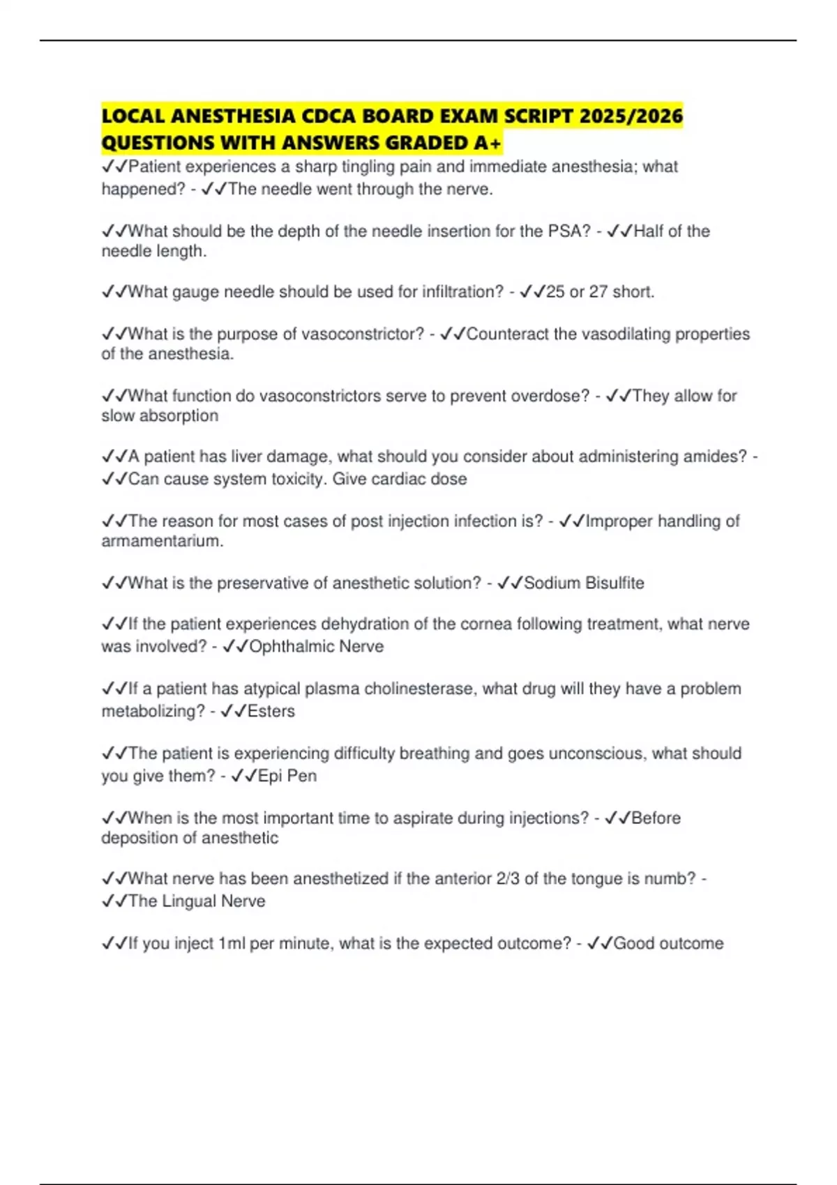 ✔✔What gauge needle should be used for infiltration? - ✔✔25 or 27 short.