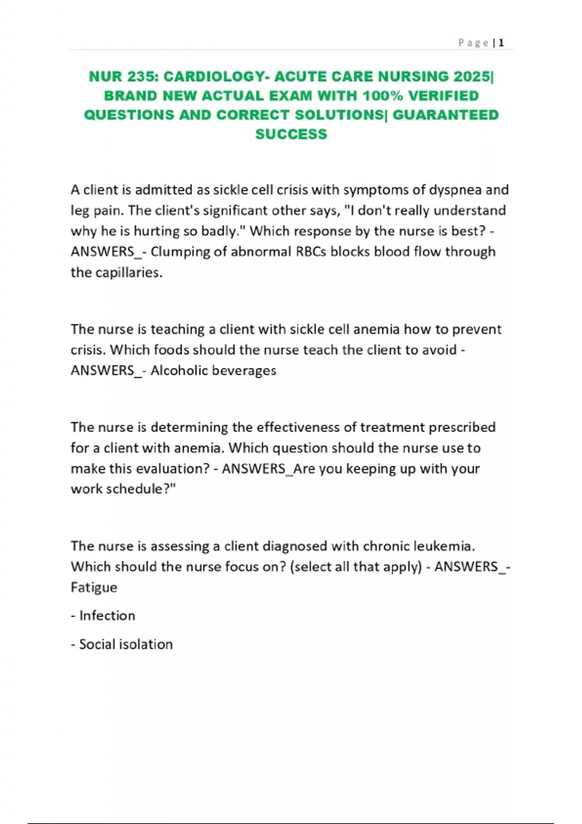 PACKAGE-::NUR 235 CARDIOLOGY EXAMS WITH VERIFIED SOLUTIONS| LATEST UPDATE