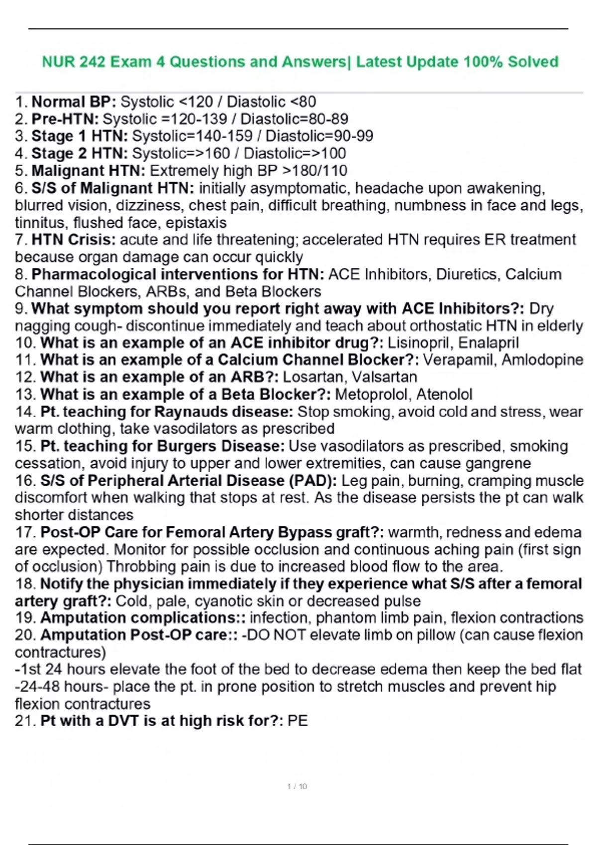 NUR 242 Exam 4 Questions and Answers| Latest Update 100% Solved