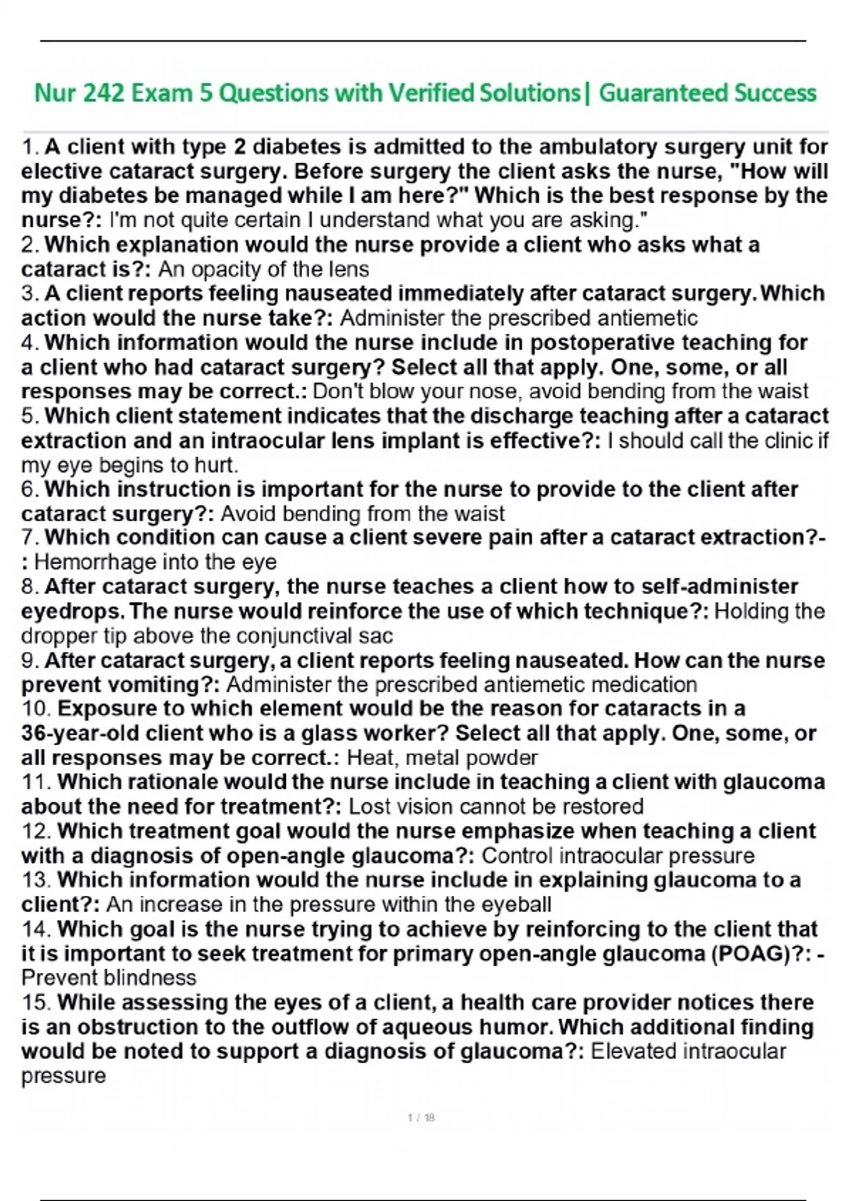 Nur 242 Exam 5 Questions with Verified Solutions| Guaranteed Success