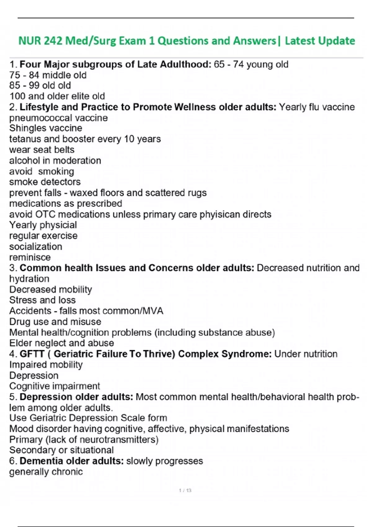 NUR 242 Med/Surg Exam 1 Questions and Answers| Latest Update