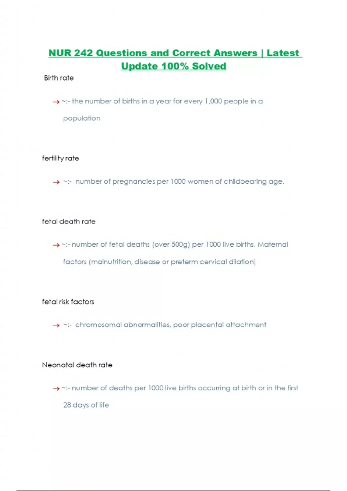 NUR 242 Questions and Correct Answers | Latest Update 100% Solved